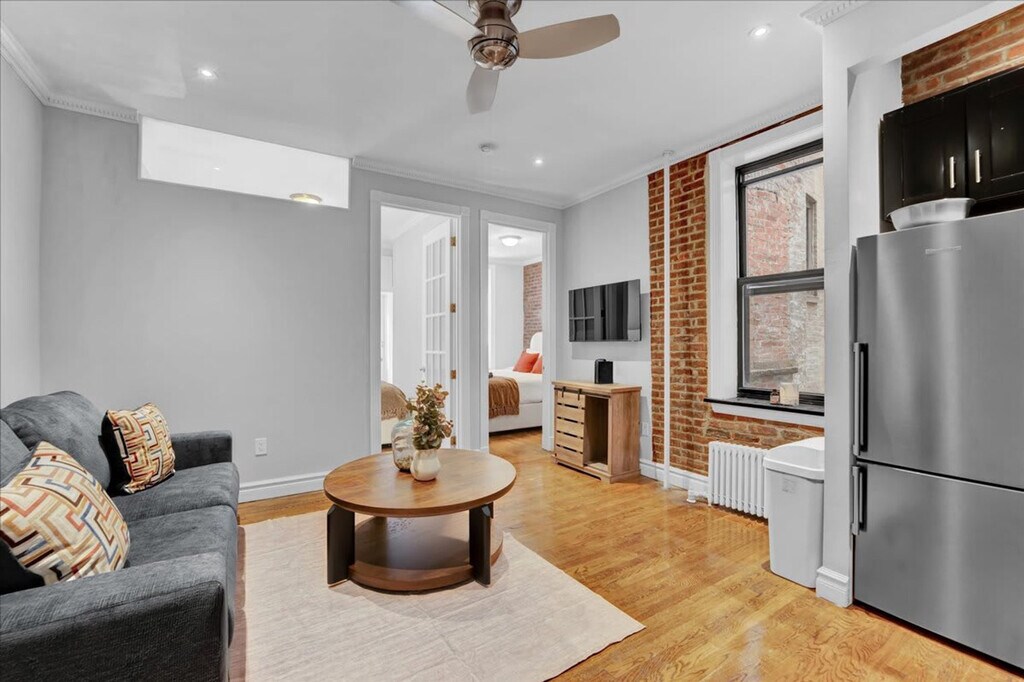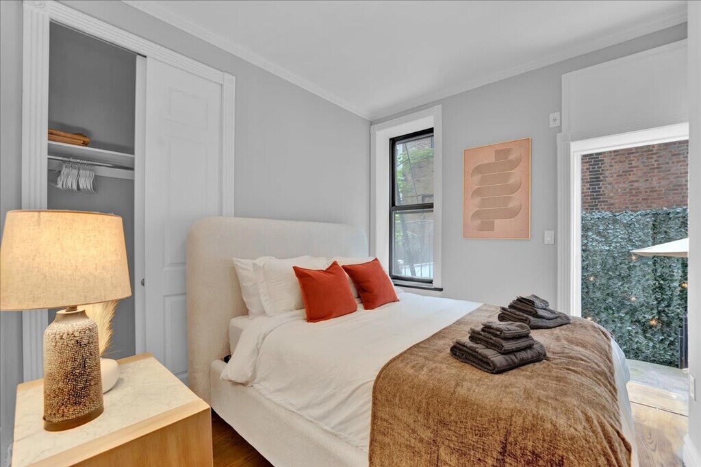 Discover the charm of East Village with this newly renovated 2-bedroom designer apartment, featuring a private outdoor garden and stylish interiors. Situated on the ground floor, this apartment offers a seamless blend of modern comfort and upscale aesthetics, making you feel at home. Ideal for work trips, families, or longer stays, it boasts 1,000 Mbps internet, a washer/dryer, and a wine fridge. This thoughtfully designed apartment includes a queen bed in the primary bedroom, a full-size bed in the second bedroom, and a queen pull-out couch in the living room. The fully equipped kitchen features a wine fridge and dishwasher, while the in-unit washer and dryer add convenience. Enjoy the private outdoor garden with café seating, custom lighting, curated art, and unique furnishings throughout. We offer luggage storage referrals and custom stay set-ups on request. Nestled in the heart of the East Village, one of NYC’s most eclectic and vibrant neighborhoods, you are within walking distance to Tompkins Square Park, Stuyvesant Square, world-class dining, cozy cafes, indie shops, bars, Trader Joe’s, Whole Foods, and local boutiques. The East Village blends bohemian vibes with downtown sophistication. The apartment is professionally cleaned before every stay. Quiet hours are from 10 PM to 8 AM. No parties, no unregistered guests, and no smoking are allowed. Self check-in is available with a smart lock. With 1,000 Mbps high-speed internet, this apartment is perfect for remote work. Registration Number: HSR23-000790 [SI]