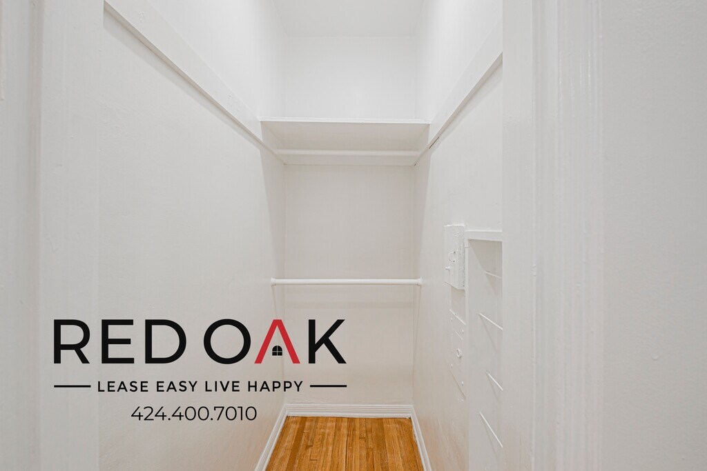 ~1 Month FREE + FREE Parking~ Bright and Airy One Bedroom Featuring Spacious Rooms, Eat-In Kitchen with Essential Appliances, On-Site Laundry, and Available Parking ~ In Lovely Beverly Grove! *MOVE-IN SPECIAL* **Resident will receive a one-time credit of 1 Month off of the Market Rent Price of $2,495, on approved credit, as a 33% rent reduction in each of the first three months of the lease. The net effective rent shows the savings as amortized over the entire 12-month lease term. The advertised price is based on the NET EFFECTIVE RENT.* ~ Key Features: ~ Brightly Lit: Natural light from large windows is complemented by recessed lighting. ~ Hardwood Style Floors: Enjoy beauty and durability. ~ Temperature Control: Window-mounted A/C for summer heat, and mini split system in dining/kitchen area. ~ Kitchen Delight: Quartz countertops, ample hardwood cabinetry, and essential appliances. ~ Bedroom Retreat: Generously sized bedroom, featuring an ample closet. ~ Bathroom Haven: Soaking tub with a rain-style showerhead, vanity cabinet, and well-lit mirror. ~ Parking: Parking will be FREE for the first year of the lease. ~ Utilities: Water and Trash services are bundled in your rent price. ~ On-Site Laundry: Convenient facilities for easy washing. ~ Prime Location: Walking distance from CBS Studios, The Grove, Pan Pacific Park, LACMA, and Melrose shopping. Minutes to Cedars-Sinai, Beverly Center, and some of the city's best dining and entertainment. Don't miss out on the opportunity! Available for an immediate move-in. Call to schedule a viewing today! LEASE TERMS: One Year Lease Photos may not reflect the exact available unit. Availability is not guaranteed—please verify all details. Square Footage is approximate. Showings may not be 1-on-1. All information must be validated on Red Oaks Website since 3rd party websites can feed incorrect information. Pricing and availability are subject to change without notice and may vary between similar units. **All applicants receive equal consideration; we follow all Fair Housing laws.*