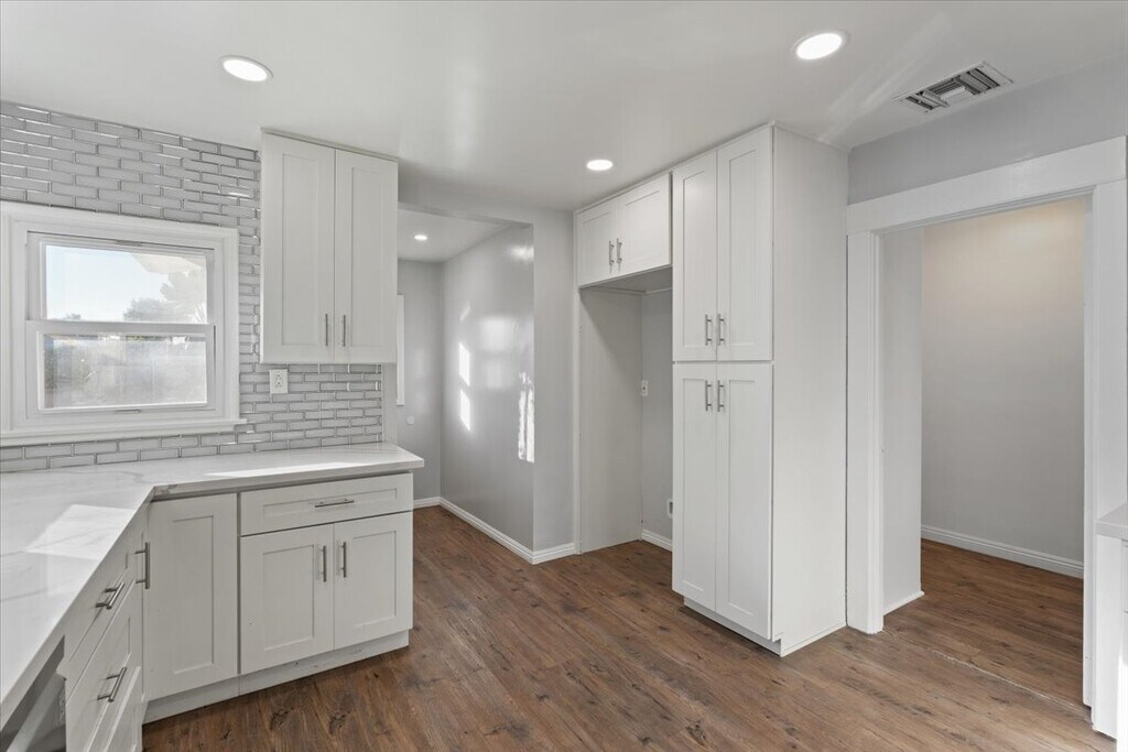 Welcome to a beautifully remodeled 3-bedroom, 2-bath freestanding single-family residence offering the privacy and comfort of a standalone home within a small and well-maintained Inglewood complex. The interior has been tastefully updated with a clean, modern aesthetic. Luxury vinyl flooring, recessed lighting, and fresh interior and exterior paint create a bright living environment. The living room is anchored by a striking marble fireplace, complemented by an elegant mantel crafted from quality maple wood—adding warmth and character. At the heart of the home is a beautifully appointed kitchen that balances form and function. Quartz countertops and a full-height subway tile backsplash provide a timeless look, while generous cabinetry with pull-out shelving, soft-close drawers, dual Lazy Susans, and a pantry offers exceptional storage. A stainless steel farmhouse sink and high-end LG appliance suite complete the space, including a microwave, 5-burner range with convection oven and built-in air fryer, along with an LG dishwasher. Just off the kitchen, a versatile bonus room that adapts to your needs whether as a dining area, home office, den, or creative space. The larger bathroom features a spacious double vanity and classic Spanish tile, blending charm with practicality. Storage is abundant throughout the home, with thoughtfully placed cabinets, closets, and cupboards. An indoor laundry includes an LG Wash tower for added convenience. Outside, enjoy a welcoming front porch already set with a table and chairs an inviting spot to unwind or start your mornings all topped off by attractive landscaping to enhance your sense of calm. Parking is equally accommodating, with a two-space carport offering substantial overhead storage. Comfort is ensured year-round with central air and heating, while the location places you at the center of it all. With quick access to the 405 freeway- LAX just minutes away- and nearby shopping and dining at destinations like Howard Hughes Center and Westfield Culver City, daily errands and entertainment are effortless. World-class venues including SoFi Stadium, Intuit Dome, The Forum, YouTube Theater, and Cinepolis Luxury Cinemas are all within 2 miles—and when the mood strikes, the beaches are about a 12 minute drive away. This home offers a combination of privacy, thoughtful upgrades, generous storage, and an exceptionally convenient location. Schedule a tour today and experience it for yourself.