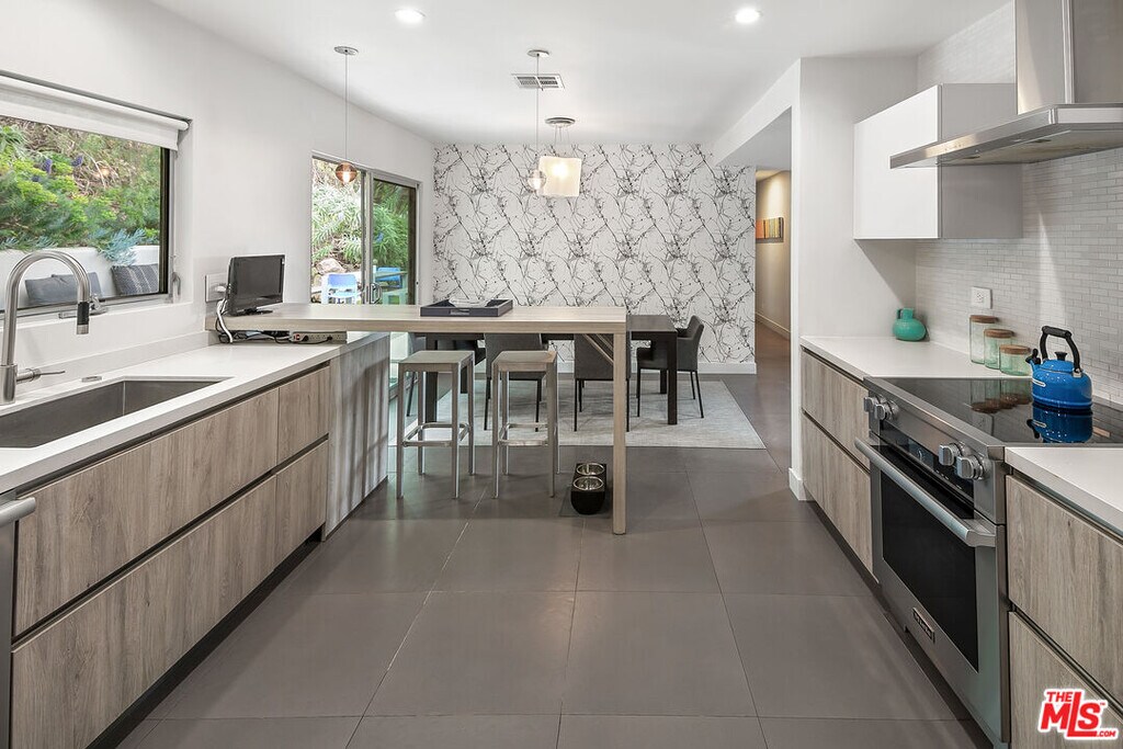 Newly remodeled and exceptionally private residence in the hills of Sherman Oaks, offering a contemporary, open layout and lush backyard retreat. A true entertainer's home, featuring multiple fireplaces (indoor and outdoor), a hot tub, and built-in outdoor fire pit seating. The front of the home is fully enclosed with thoughtful, custom landscaping and includes a garage and a private entry option. Inside, the living room is filled with natural light, while the primary suite offers a modern en-suite bathroom featuring a steam shower. Two additional guest bedrooms provide flexibility for family, guests, or office use. The custom kitchen is a standout, designed with high-end finishes and premium Miele appliances, including a range, steam oven, and dishwasher. The home also includes a refrigerator/freezer and a newly purchased washer and dryer. Outdoors, the property is a true oasis with multiple entertainment areas, a long side yard, and a garden space, offering both privacy and versatility. Located in the desirable Roscomare Road School District, just moments from the Beverly Glen Center with easy access to curated shopping and dining. Conveniently positioned near Beverly Hills and Ventura Blvd's shops, restaurants, and nightlife. Available ASAP. Long term leases only. MLS# 26713333