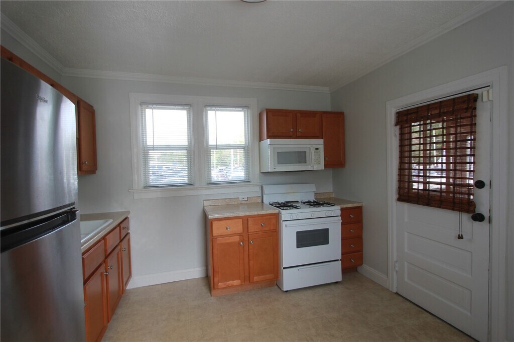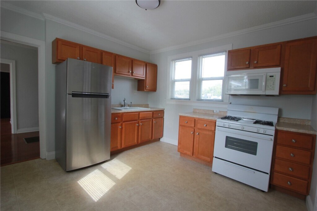 Rental! Well maintained, freshly painted, updated one bedroom, one bath home is waiting for your arrival. The covered porch, private driveway and the large grounds grabs your attention. Step into the living room with overhead lighting, lots of sunlight. Separate dining with laminate flooring. The spacious eat-in kitchen with an abundance of counter space, custom cabinetry, double sink, and provided appliances; refrigerator, built-in microwave and gas stove. The man door off the kitchen leads to a covered deck which is wonderful for relaxing, reading a book or entertaining. Ceiling fans, laminate flooring, blinds throughout the home. Closet space includes; coat closet, linen closet, and a large bedroom closet with organizers. Natural light pours in through the vinyl windows. Modern bathroom with stylish vanity, ceramic tile flooring and cabinetry. Good systems. Accommodating driveway with garage used like a shed. Nice size side and back yard. The tenant pays for water, electricity, gas. The landlord pays the sewer bill. Security deposit $950 Minimum one year lease. Application process Exceptional Landlord looking for exceptional tenants. Pets allowed: Small dog or cat with a $250.00 pet deposit and $25.00 per month extra. NOTE: The basement could leak during heavy rains.