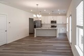 Step into luxury with 9-foot ceilings on the main floor and elegant crown molding in the Owner's Suite. The open layout features premium Mohawk LVP flooring, an oak tread staircase, and stylish designer light fixtures throughout. The gourmet kitchen is a chef’s delight with 42-inch cabinets, Miami White Silestone quartz countertops, a 50-50 stainless steel sink, and Whirlpool stainless steel appliances. The Owner's Suite offers a serene escape with a tray ceiling, a luxurious bathroom featuring a separate tiled shower, a garden tub, and modern quartz vanities with rectangular undermount sinks. Energy efficiency is built-in with insulated windows, programmable thermostats, LED lighting, and a 50-gallon electric water heater. Safety features include smoke and carbon monoxide detectors on each floor. Enjoy the convenience of professionally maintained landscaping, sidewalks, and streetlights in a community perfectly situated near shopping, dining, and parks. With flexible spaces like a loft that can be transformed into a home office or extra bedroom, this home adapts to your needs. Experience modern living at its finest. Schedule your tour today and make it your new home!