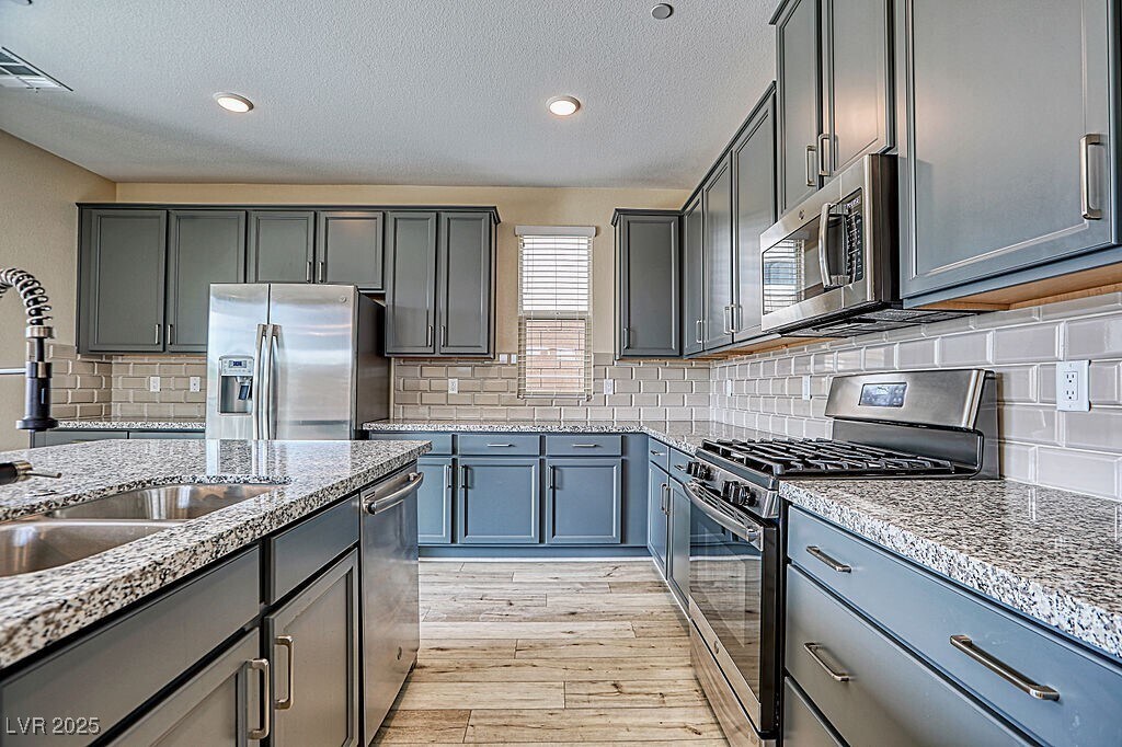 Discover this gorgeous four-bedroom, three-bath home tucked inside the highly desirable Inspirada community. Designed for both comfort and style, the home offers a spacious, open layout accented by stunning laminate and plush carpet flooring. The beautifully appointed kitchen showcases custom cabinetry, stainless steel appliances, a generous island overlooking the backyard, and a walk-in pantry—perfect for cooking and entertaining. Retreat to the inviting primary suite featuring recessed lighting, a ceiling fan, sleek laminate flooring, and a roomy walk-in closet. The spa-like primary bath offers dual sinks and an oversized walk-in shower. Step outside to your private oasis: a charming backyard with a sparkling pool, complete with a soothing waterfall feature, secure fencing, and a covered patio ideal for relaxing or hosting guests. This exceptional home is move-in ready and truly a must-see—opportunities like this don’t last long!