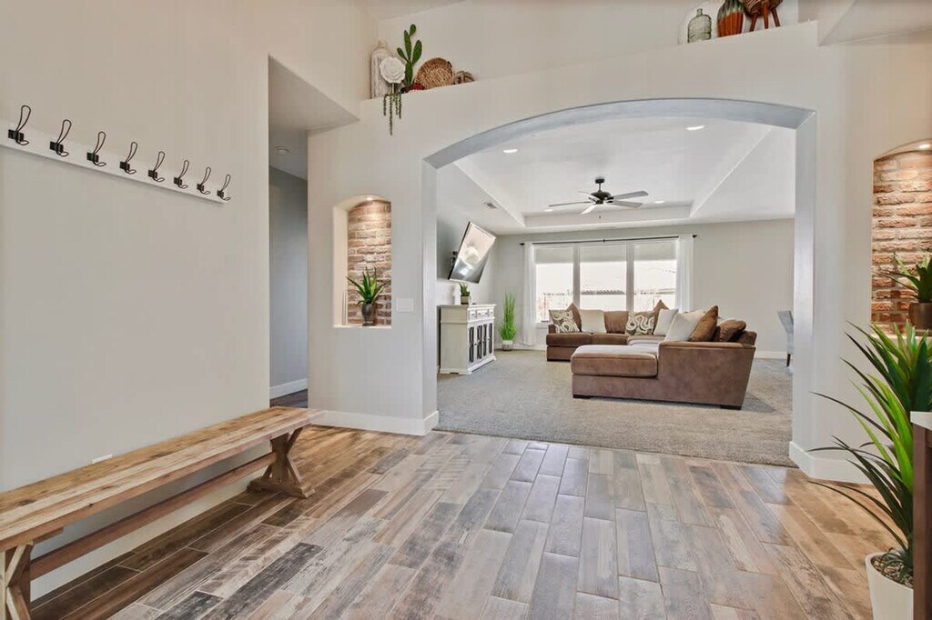 If you are looking for a luxurious home in Hurricane for your personal getaway, this is the home for you. Built in 2016, this house is filled with beauty and unique touches like exposed brick walls, solar tube skylights, all new appliances, and ultra-modern lighting. The fresh and updated feeling of this home, paired with a covered patio and private pool in the fully enclosed backyard, is a combo that can't be beat. The pool is not heated, but you can enjoy the private hot tub! As a guest, you'll have access to everything within the home and the backyard, and we invite you to use the garage and driveway for parking. The home is within close proximity to the neighborhood playground and park with picnic tables, making it a perfect gathering place for events or family time. This home is locally maintained and kept in great condition, ideal for both business and pleasure stays, offering a 5-star getaway in the St. George area. The home is located near a neighborhood playground and park with picnic tables, providing a perfect spot for gatherings or family time. Guests are required to digitally agree and sign house rules and rental agreement, which will be emailed once booking is received. We love to give our guests space to enjoy themselves, but we are also available when needed, so don't hesitate to message us. [SI]