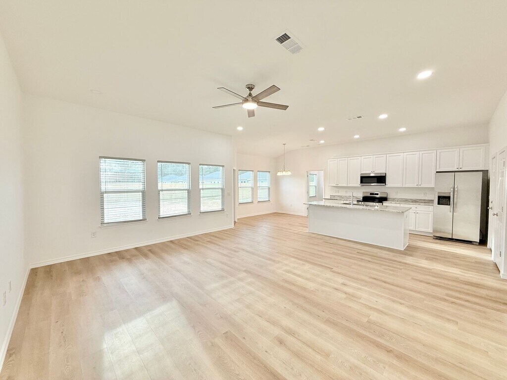 View in 3D: Welcome to this beautiful 4-bedroom, 2-bath home, offering 1,781 square feet of comfortable living space on a spacious 0.34-acre lot. Designed with an open-concept floor plan, the home features stylish and durable LVP flooring throughout. The kitchen is a showstopper with stone countertops, abundant cabinet space, and an extra-large center island complete with an undermount sink and dishwasher. Additional stainless steel appliances include a flat-top range/oven, built-in microwave, and refrigerator. The master suite provides a peaceful retreat with a large walk-in closet and an ensuite bathroom featuring a private water closet, dual vanities, and a standing shower. Three additional bedrooms share a second full bath with a single vanity and a tub/shower combo. Outside, the backyard offers a partially covered concrete patio, perfect for relaxing or entertaining, and a new privacy fence will be installed soon.