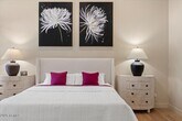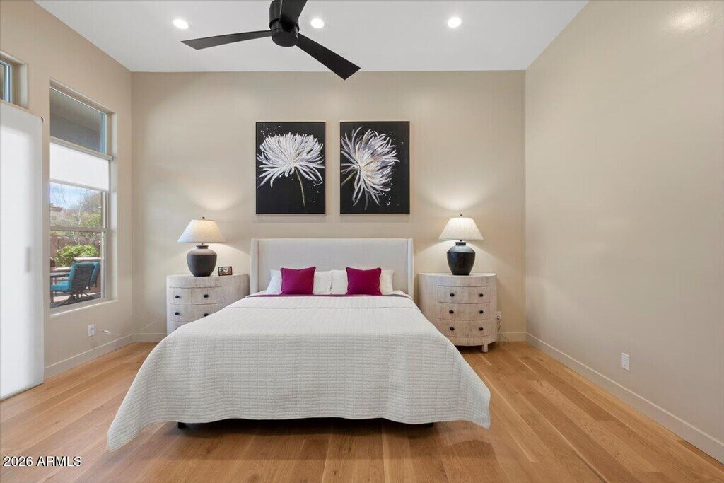 Stunning 4 bedroom,4.5 bath home with luxury custom finishes. Available intermittently through the season depending on months and length of lease. Completely renovated unique interior design with custom finishes throughout. White Oak 7'' wide plank hardwood floors in living spaces. Porcelain tile 24'' wide in master bath,guest bath,office bath and laundry. Incredible over sized kitchen island with waterfall sides and matching quartzite stone counters in kitchen,yoga room,master & guest bath. Custom lighting & chandeliers throughout with dimmers,led lights & solar tubes. All bedrooms are ensuite. 3rd bed is office/den with comfortable pull out couch. 4th bedroom is a detached 400 Sq ft Casita. Spool,very spacious backyard with view and privacy. 2 stall garage available.