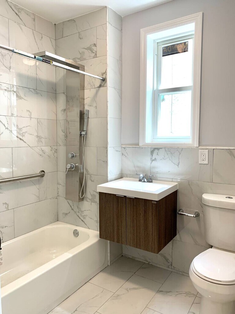 Requirements: Must have good credit history, no exceptions! Tenant pays all utilities: cooking gas, electric, heat and hot water. Renovated 2 bedroom 1 bath apartment on the second floor of a walk up two story residential house. Modern white shaker cabinets with quartz counters and stainless steel appliances. Beautiful hardwood floors, spacious and modern bathroom, very bright and airy, next to all stores and restaurants, walking distance to #5 train. 3 People maximum. No smoking, no pets allowed!