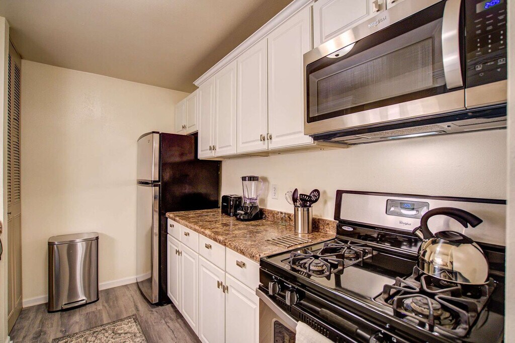 Feel at home in this 1-bedroom second-floor apartment. This extended-stay unit is designed for the long-term guest and features a 65" Roku Smart TV, a large sofa, two chairs in the living room, a king-size bed with dual nightstands, two large closets in the bedroom, a dining area with seating for four, a dishwasher, and extra sheets and towels. The apartment includes a balcony off the living room. Free off-street parking is available in the back and the front of the building. There are no assigned stalls, so you may park in whichever stall is open. Located near the intersection of Milwaukee, Greenfield, and New Berlin, this apartment is a 10-minute drive to St Luke's and MKE Med Center, and a 25-minute bus ride to St Luke's. You can hop on the highway bypass in 2 minutes to get anywhere in the city. Target and Home Depot are 1 mile away, and there are 16 restaurants and bars within 3 miles. The Metro Bus Stop is a 3-minute walk from the apartment, and the metro system will take you almost anywhere in the city. This is a quiet building, so please remember to keep the noise to a minimum. Any smoking will result in immediate cancellation of the reservation with no refund for the entire stay. The charge to remediate smoking is the actual costs of complete environmental remediation or $3,000, whichever is lower. Excessive noise violations after the first complaint will result in cancellation of the reservation with no refund. Pets on the premises without advance written permission will result in the actual costs of complete environmental remediation or $3,000, whichever is lower. Keep the apartment, furniture, dishes, linens, and towels reasonably clean during your stay. Please only use the black towels for makeup removal. If you are staying in a pet-friendly apartment, pet waste should be cleaned up and disposed of in the outside trash. Please contact us immediately if there is damage to anything in the apartment or the property so we can address it as soon as possible. If there is damage to the apartment and we are not notified, it can result in cancellation of the reservation. Missing or destroyed fixtures or personal property will result in the actual replacement cost plus a restocking fee of $50.00. Includes a dedicated workspace with a desk and work chair. [SI]