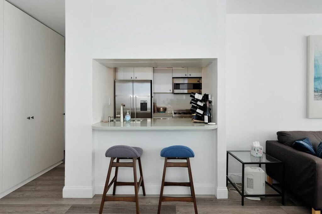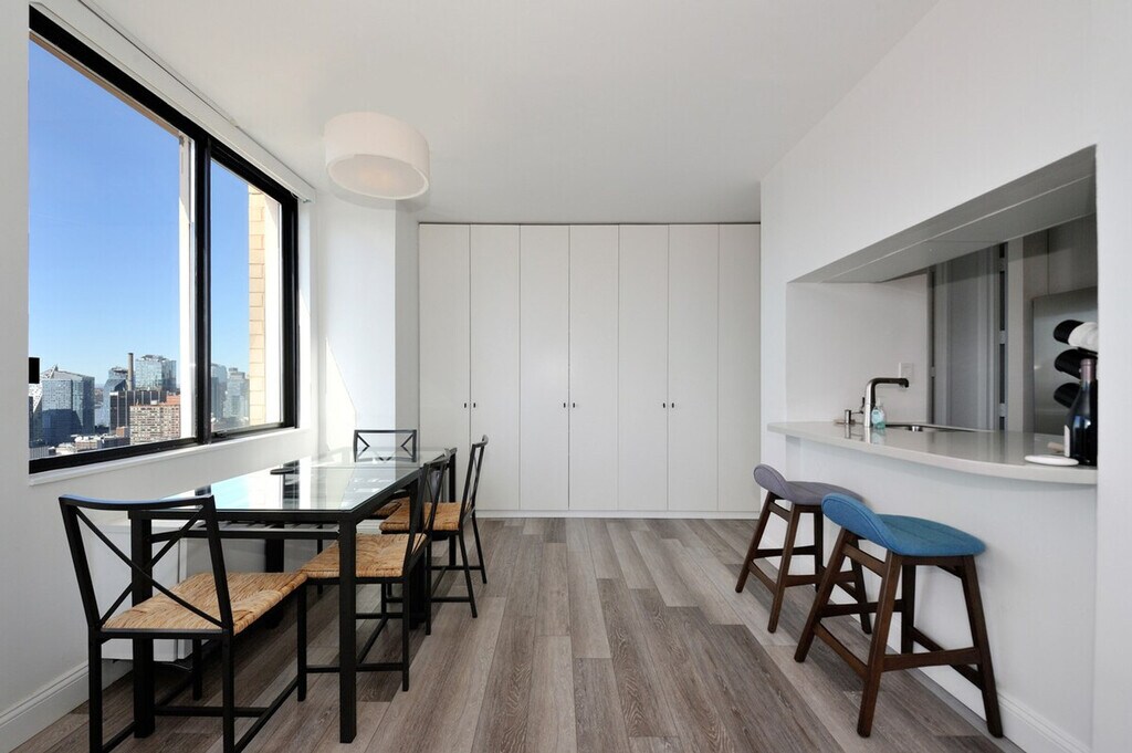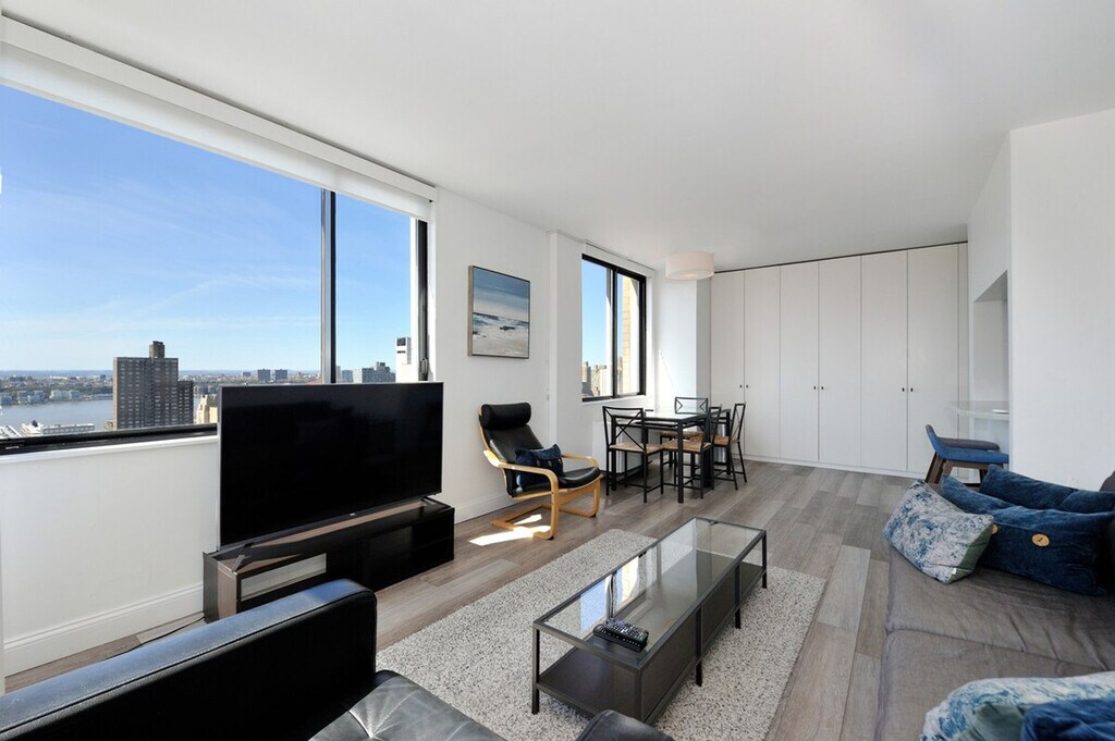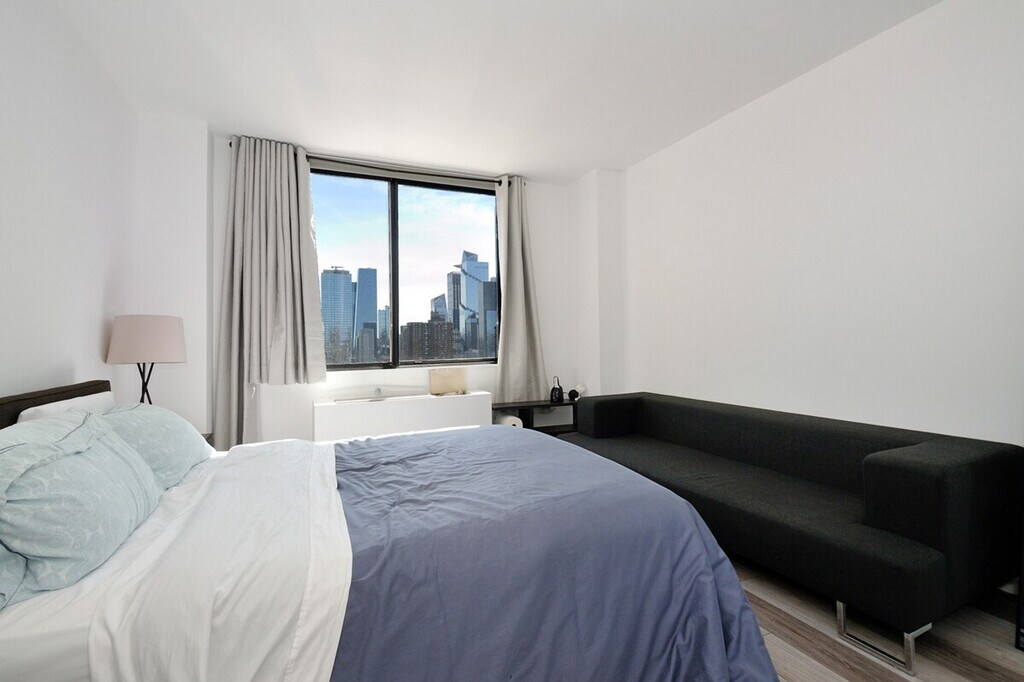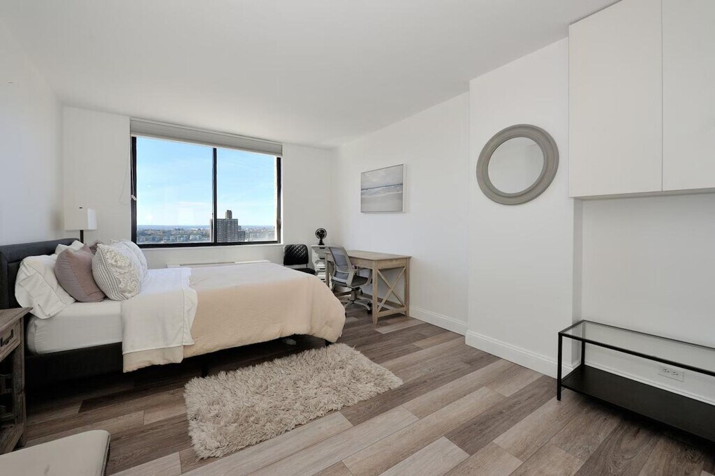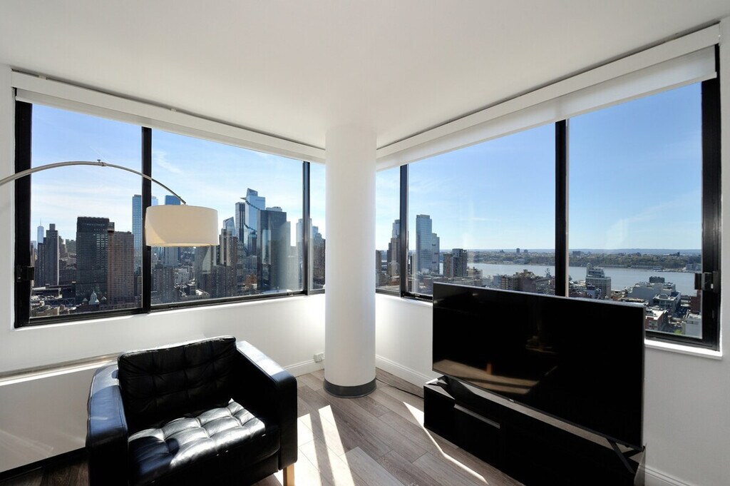 Discover amazing city skyline and Hudson River water views from this 34th-floor apartment. Feel at home in this fully furnished 2-bedroom, 2-bathroom apartment in a doorman elevator building. This apartment features a large living room with great sunlight, an outdoor space, and automated electric shades for each window. The modern kitchen is fully equipped with a dishwasher, and there is a Samsung washer and dryer in the apartment. Enjoy a stylish experience at this centrally located place.