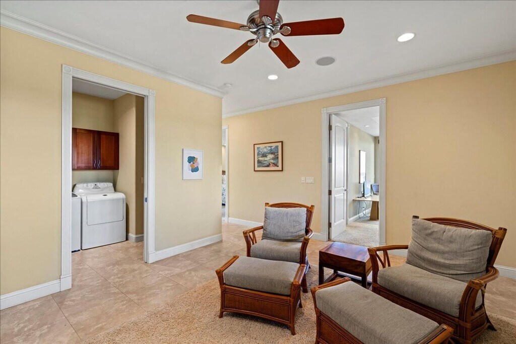 Tucked away on a serene street in Ka’anapali Golf Estates, this exquisite island residence embodies West Maui luxury. Adjacent to a rare four-lot compound, it offers enhanced privacy, lush landscaping, and commanding ocean views. Designed for effortless indoor-outdoor living, the upper-level great room opens onto a generous west-facing lanai, perfect for sunsets and whale watching. With 10’ ceilings and rich finishes, this custom-built home features rainforest granite counters, Cherry cabinetry, Italian porcelain flooring, and limestone and travertine bathrooms. The gourmet kitchen boasts top-tier appliances, including a Wolf gas cooktop and ovens, Sub-Zero refrigeration, Bosch dishwasher, and an oversized island. The spacious open-concept floor plan is inviting and refined, ideal for relaxed island living or entertaining. Downstairs, a private bedroom wing ensures peace and comfort, with a dumbwaiter and indoor laundry room. The lifestyle offers access to the Ka’anapali resort experience, including golf carts, beaches, restaurants, golf courses, and shopping. This fully furnished, turnkey home invites you to enjoy luxurious, low-key island living, perfectly connected to the heart of Ka’anapali. • Landscaping and Trash are Included. • Electric, Water and Cable ARE NOT INCLUDED. • No Pets • No Smoking $7950/month + G.E.T. ($374.60)+ Electric, Water, Cable, + Renters Insurance One Year Lease Please call Matt for more information