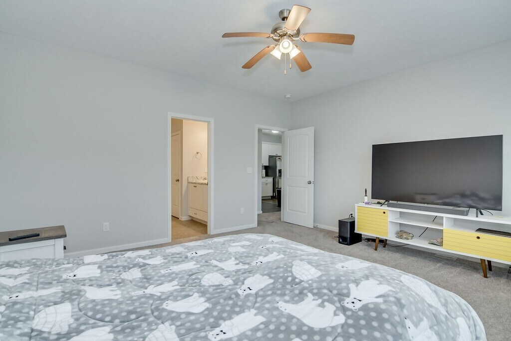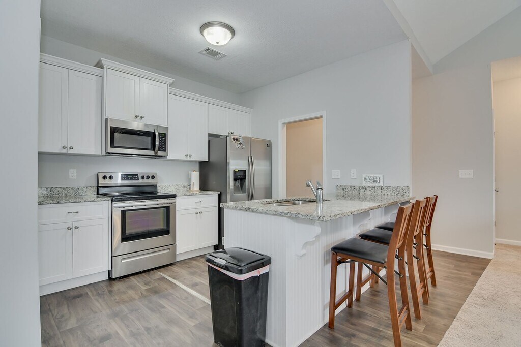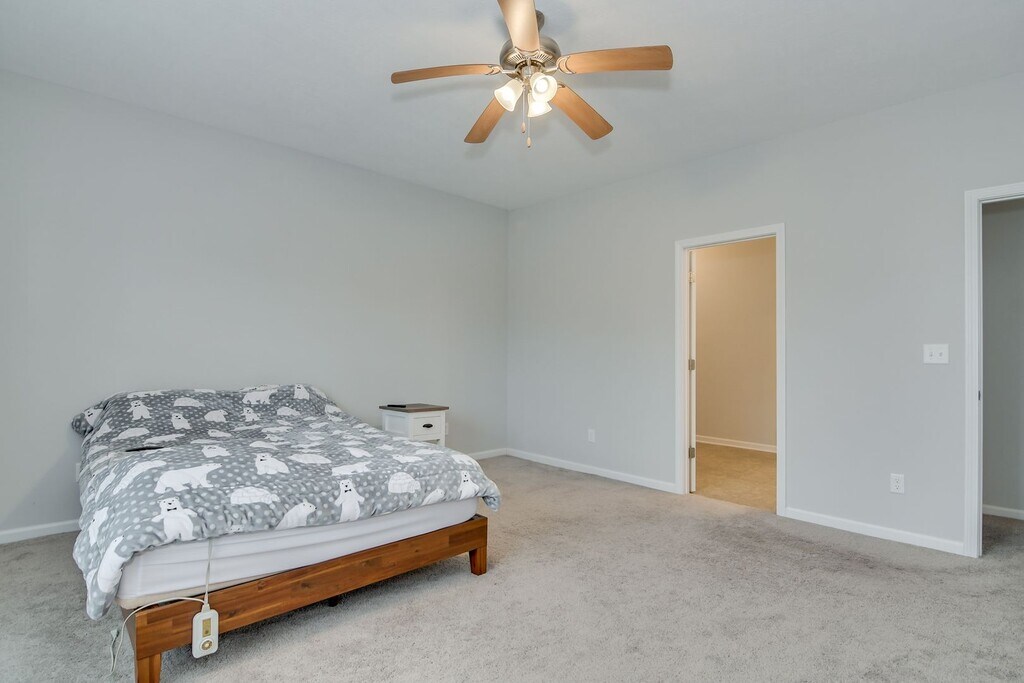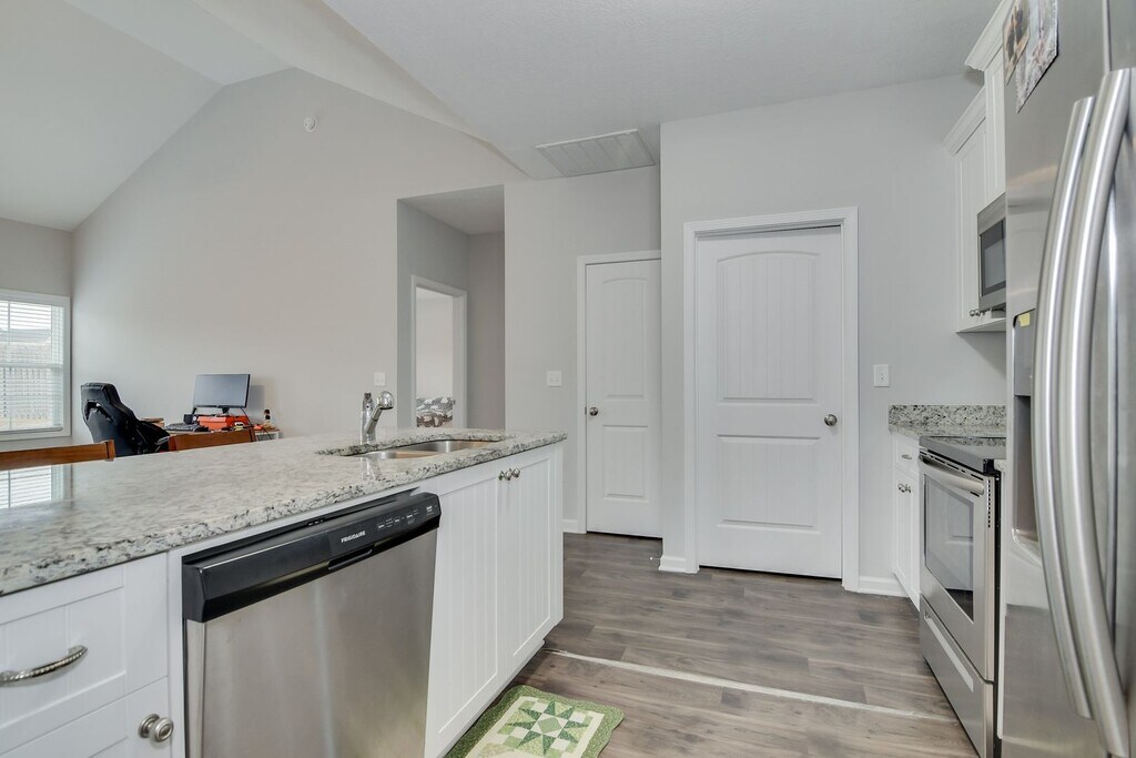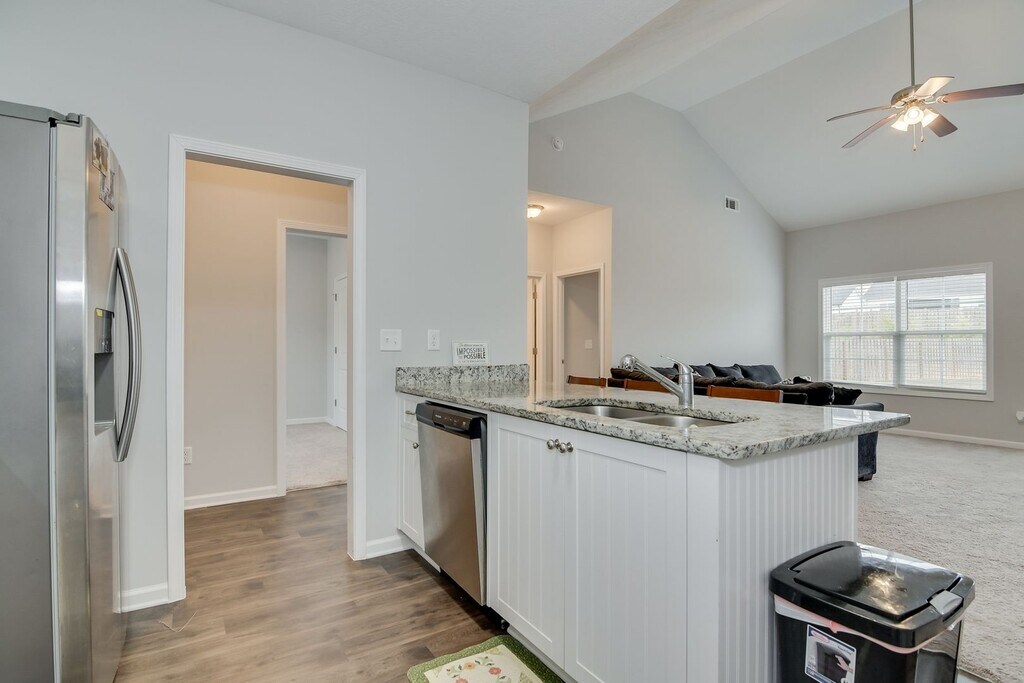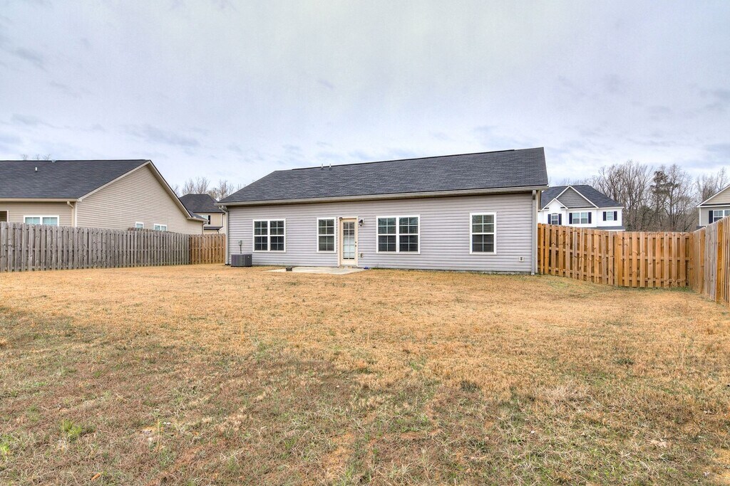 You will love the split ranch open concept floorplan, as soon as you enter. From the rocking chair covered front porch you enter into a welcoming foyer. Kitchen has granite counters & stainless steel Frigidaire appliances and Looper custom cabinets with soft close doors. The breakfast bar is open to the breakfast area & great room. The master suite has a large walk in closet and dual vanities . Large large flat backyard. Grove Landing amenities include ; Jr Olympic pool, clubhouse, 2 playgrounds, streetlights, fiber internet, 2.5 acre stocked pond.