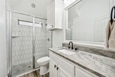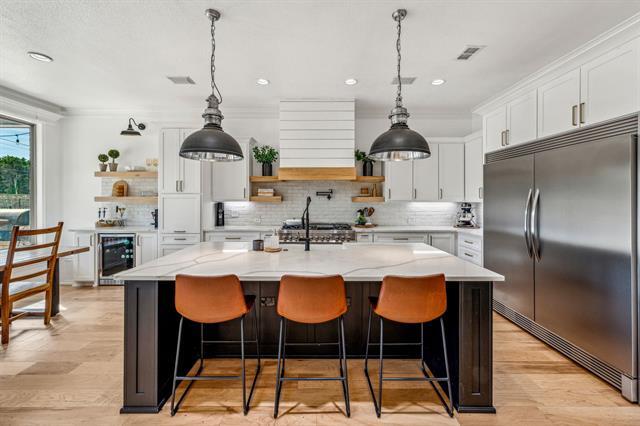 This home is an entertainers dream and move-in ready! This four bedroom, three bathroom home in Abe's Landing has been recently remodeled. The expansive kitchen features a commercial grade oven, large granite island and farmhouse sink, butlers pantry, built in wine fridge and built in dining area with seating. The large primary bedroom and bathroom feature a large walk in shower, separate garden tub, dual sinks and large walk in closet. The room upstairs complete with a full bathroom can be used as a fourth bedroom, game room, media room or office. The possibilities are endless! You won't want to leave once you step foot into the backyard oasis! The covered patio includes an outdoor kitchen featuring several barbecue grills and a fireplace. Cool off in the pool and under the cabana in the summer or cozy up by the fire pit in the winter. The backyard also features a putting green and two fenced in areas that could be used as dog runs or garden areas. The backyard setup is perfect for hosting family and friends all year long!