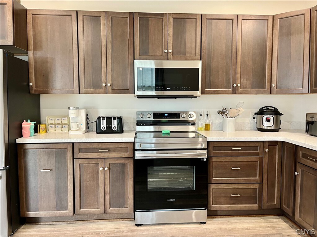 Newly remodeled single family Ranch style home on the Oswego River! This one floor living home was just completely remodeled last year with brand new flooring,lighting,ceiling fans in every room with remote functions,all new stainless steel kitchen appliances,first floor laundry room,2 full brand-new bathrooms and new decking. All bedrooms have spacious closets,primary walk-in closet. Enjoy the covered front porch or the back deck that stretches the length of the home with entries from both the living room and primary bedroom suite to enjoy that beautiful view of the river. Large back yard leading down an open walking path right to the Oswego River where you can sit and enjoy the view,drop in a kayak or just walk right into the water. New central air unit,hot water heater and furnace,partial basement great for storage. Spacious driveway can easily fit multiple vehicles. Rental application must be filled out prior to showing requests.