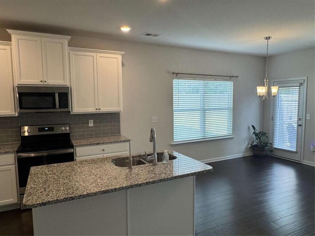 Stunning End-Unit Townhome in Lakeview at Stonecrest! This gorgeous end-unit townhouse is a rare find! Featuring gleaming hardwood floors and soaring ceilings on the main level,this home offers both style and comfort. The modern kitchen is a chef's dream with sleek 42" cabinets,granite countertops,a spacious island,and a bright breakfast area that flows seamlessly into the cozy family room-perfect for relaxing or entertaining. Upstairs,the oversized owner's suite is a true retreat with a spa-like bathroom,complete with dual vanities and a separate shower. Generously sized secondary bedrooms ensure everyone has their own comfortable space. Enjoy added privacy with a fenced yard separated by a panel from neighbors. Community amenities include a sparkling pool and cabana-ideal for enjoying sunny days. Conveniently located near shopping,dining,and major highways,this home truly has it all! Don't miss this one-schedule your tour today!