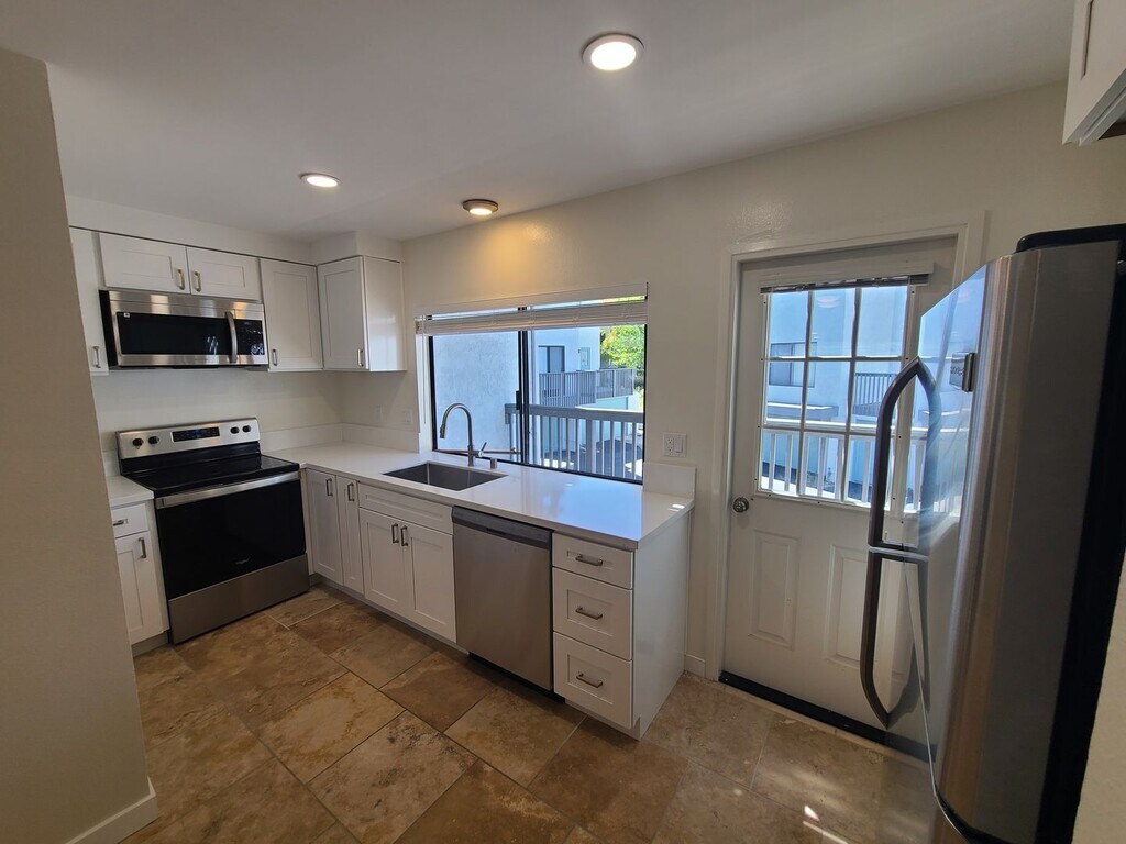 Spacious and remodeled 2 bedrooms, 2.5 bathrooms townhome is in the resort style community of the woodlands. The property features brand new flooring, new blinds, new paint throughout all three levels, newly remodeled kitchen with stainless steel appliances and new bathrooms plus a private extra-large 1 car garage with direct access to the home and washer and dryer. The 1st level offers a large living room area with high vaulted ceilings, fireplace and a large front patio with sliding doors. The 2nd level features a small dining area, a half bath and kitchen with access to a spacious outdoor balcony. All 2 bedrooms are located on the 3rd floor. The Big windows and skylights bring a bright and light atmosphere to the unit. Residents of the Woodlands community enjoy a solar-heated pool, jacuzzi, sauna, clubhouse with cooking facilities, tennis courts, BBQ grills and picnic areas. Located in the center of San Diego’s “Golden Triangle,” the UTC/University City neighborhood is within minutes of UCSD and the city’s booming biotech industry hub. Minutes from the beach, premium shopping, and some of the city’s best schools. For those who love hiking and the outdoors, both Rose Canyon and San Clemente Canyon offer miles of trails and over 100 species of indigenous birds. Flanked by 805, 52, and 5 freeways, any commute is a breeze!