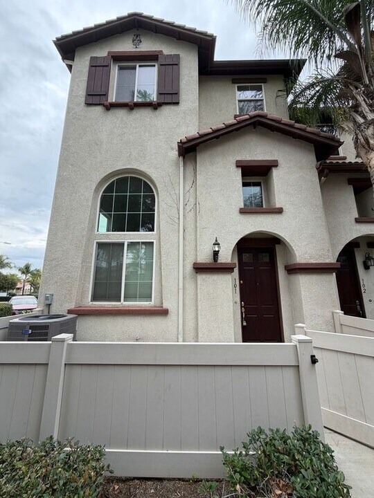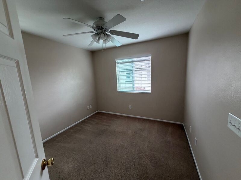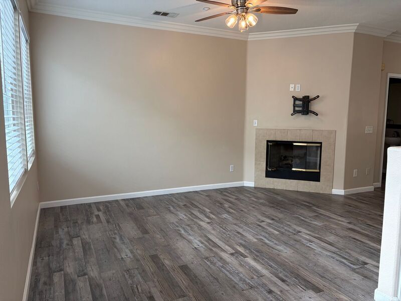 Neutral interior with wood laminate flooring in high traffic areas. Living room and formal dining room. Large kitchen with breakfast nook & includes refrigerator. Family room with fireplace. Upstairs laundry room that includes washer and dryer. Large master bedroom with walk-in closet. Ceiling fans and window coverings throughout. Walk-in closet. Ceiling fans and window coverings throughout. Owner pays HOA dues. Community amenities include: pool/spa and gated entrance. Close to shopping, restaurants and highway 215. Will consider dogs, no cats. Amenities: gated community, community room, community pool/spa