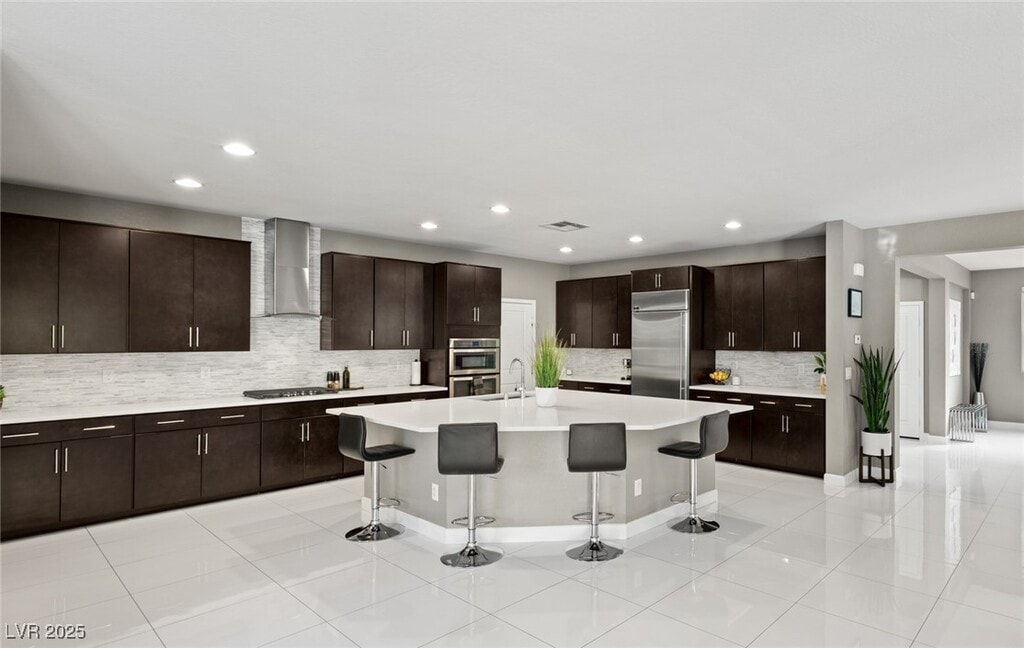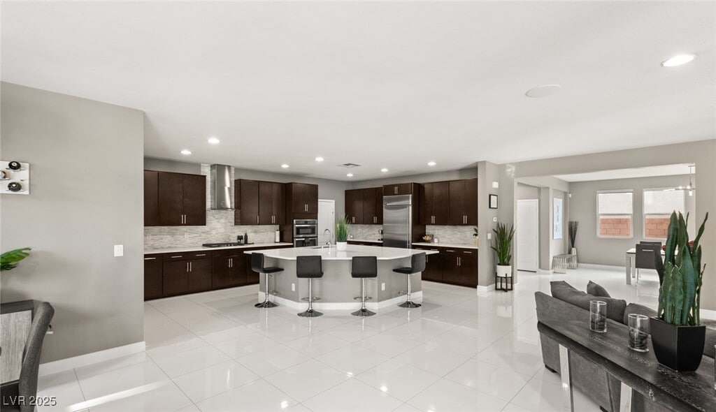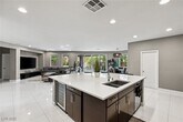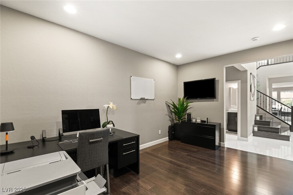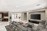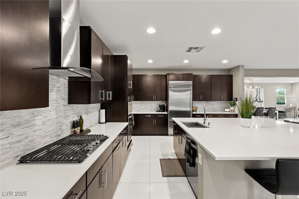 This elegant two-story home with a three-car garage showcases beautiful ceramic tile and wood flooring throughout. The open-concept great room connects seamlessly to the dining area and chef’s kitchen, featuring quartz countertops, stone backsplash, stainless steel appliances, a gas cooktop with hood, sink-in-island, and recessed lighting. A formal dining room, private office, and powder room complete the first floor. Upstairs, a versatile loft sits adjacent to the spacious primary suite with wood floors, ceiling fan, walk-in closet, and spa-inspired bath including dual vanities, a makeup table, slabbed-stone shower, and separate tub. Three additional bedrooms offer ample comfort—one with its own en suite and two sharing a beautifully finished hall bath. The second-floor laundry adds convenience. The backyard is designed for relaxation and entertaining with a sparkling pool featuring a tanning ledge, spa overflow, and ample patio space.