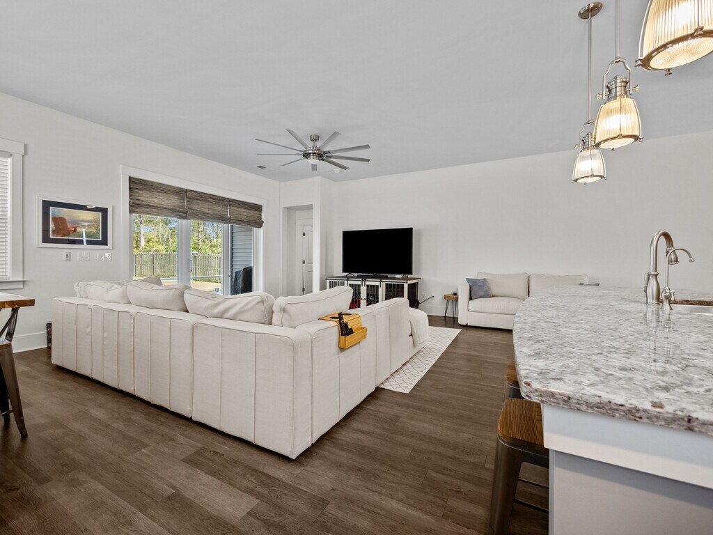 3D Tour: Coastal living in the crafted home nestled in the vibrant Waterside community. As you approach the home, you may be surprised by its unassuming exterior, but don't let that fool you. What awaits inside is nothing short of breathtaking. Upon entering, you're greeted by a spacious foyer with 10' ceilings throughout setting the stage for the elegance and comfort that awaits beyond. With no carpet in sight step into the expansive great room adorned with vaulted ceilings, creating a sense of grandeur and space that's hard to capture in photos alone (truly – view our 3D virtual tour, you'll be glad you did). The large windows flood the room with natural light, accentuating the modern finishes and designer touches that adorn every corner. The heart of the home, the kitchen, is a true culinary masterpiece. Granite countertops sparkle under the soft glow of recessed lighting, complemented by a tastefully tiled backsplash that adds a touch of elegance. With a large quantity of cabinets and countertop preparation space, there's plenty of room for storage and meal preparation, making it ideal for entertaining guests or showcasing your culinary creations. Additionally, in the kitchen, the reverse osmosis system enhances the drinking and cooking water, ensuring that every sip and every meal is of the highest quality. Say goodbye to bottled water and enjoy the peace of mind that comes with knowing your water is clean and pure straight from the tap. But it's the little details that truly set this home apart. Imagine stepping into the luxurious walk-in shower, where the water feels silky smooth thanks to the home's water softener. With each shower, you'll experience the difference as the softened water leaves your skin feeling refreshed and rejuvenated. Now the garage, oh this garage….. this truly stands out as a special feature of this home. Equipped with a mini-split HVAC unit, the garage offers climate control for year-round comfort, ensuring that even this space is optimized for your enjoyment. The side garage door with keypad lock provides convenient access, while the epoxy floors add durability and style. Additionally, a garage refrigerator that is being included offers extra storage for beverages and snacks, making it the perfect spot for entertaining. And don't forget the accessible attic space with pull-down stairs, providing ample storage for all your belongings. And perhaps one of the most enchanting features of this home is the large screened-in porch. Stretching long and wide, it offers ample space for relaxation and outdoor entertaining. Complete with a built-in doggie door, your furry friend can come and go as they please, stepping out onto the expanded concrete pad that extends from side to side of the house ready for your outdoor cooking and relaxing retreat. From there, they can explore the fully sodded fenced yard, providing a safe and secure space for them to roam and play, and the outdoor shed to store your lawnmower and other tools stored away from your luxurious showstopper garage. With other luxurious designer touches including a drop zone after entering the home from the garage, granite in the bathrooms, luxury vinyl plank (LVP) flooring throughout, therefore NO CARPET, a custom-designed walk-in closet and a walk-in shower featuring upgraded showerheads and a shower door, ceiling fans in each bedroom. Did you notice the dual linen closet in the primary bathroom? Inside the water closet (toilet room) is an additional linen closet – wow. As residents of Surf City you also get 2 beach parking passes and access to the Waterside community amenities. Waterside amenities are the most vast around and include a basketball court, sand volleyball court, tennis and pickleball courts, a fitness center, a pool, a playground, and scenic sidewalks perfect for leisurely strolls. Plus, the nearby Surf City Community Center offers even more opportunities for recreation and socialization, with meetups, rentable meeting spaces, an indoor fitness center, organized sports and crafts for all ages, a playground, soccer and baseball fields and a dedicated DOG PARK. Convenience is key with grocery stores such as Publix, Harris Teeter, Walmart, and Lowe's Hardware store just a stone's throw away, along with a CVS pharmacy for all your daily essentials. For added piece of mind, a residential back entrance into the community ensures that you're not limited to getting home by beach traffic, providing easy access to your coastal oasis. In person, this home truly shines, surpassing the expectations set by mere photographs. Schedule a showing today to experience the warmth and grandeur for yourself. Don't miss your chance to make this coastal oasis your own!