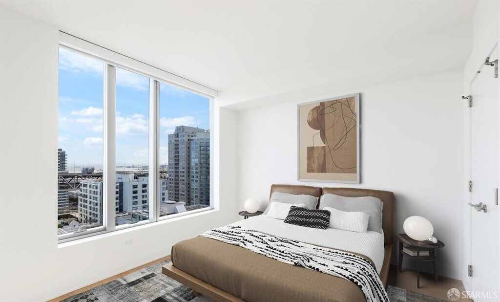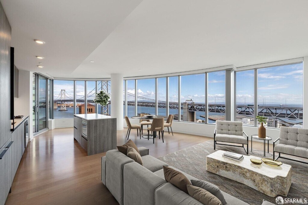 Unforgettable Bridge, Water & Sunrise Views - 1 Month Free! Sign by Oct 11 & Move in by Nov 1 to receive 1 month free rent. Live high above it all in this sought-after C-stack 2BD/2BA corner home on the 19th floor at LUMINA, with dramatic Bay Bridge and water views, flooded with natural light and daily sunrises. A signature curved wall of floor-to-ceiling windows brightens the open living space with wide-plank hardwood floors and motorized shades. Step onto the private balcony to enjoy the views. The chef's kitchen features Gaggenau appliances, SieMatic cabinetry, and Caesarstone quartz counters. The primary suite has a custom walk-in closet and a spa-like bath with dual vanities, soaking tub, and walk-in shower. Offered furnished and move-in ready with elegant RH pieces, a 65 TV, and more. Woodlands Market downstairs makes grocery trips effortless, and the Embarcaderojust two blocks awayoffers coffee, dining, and walkability. Enjoy LUMINA's resort-style amenities: 24-hour concierge and valet, 7,000-sq-ft gym, 70-ft saline lap pool, yoga/Pilates, steam/sauna, rooftop BBQ terraces with water views, private dining, club lounge, screening room, playroom, pet spa, bike storage, and more.