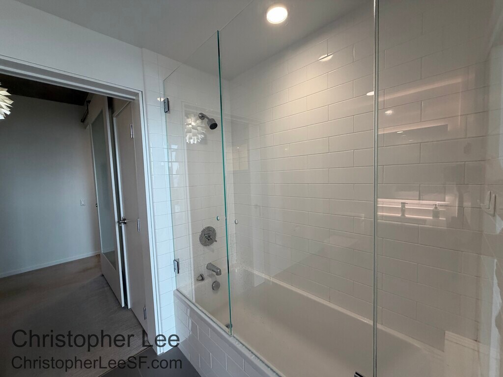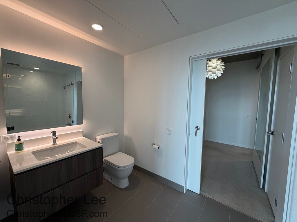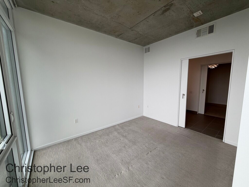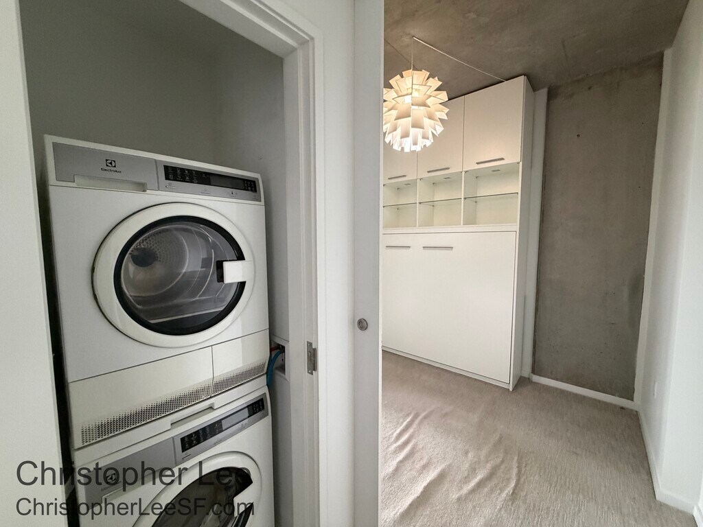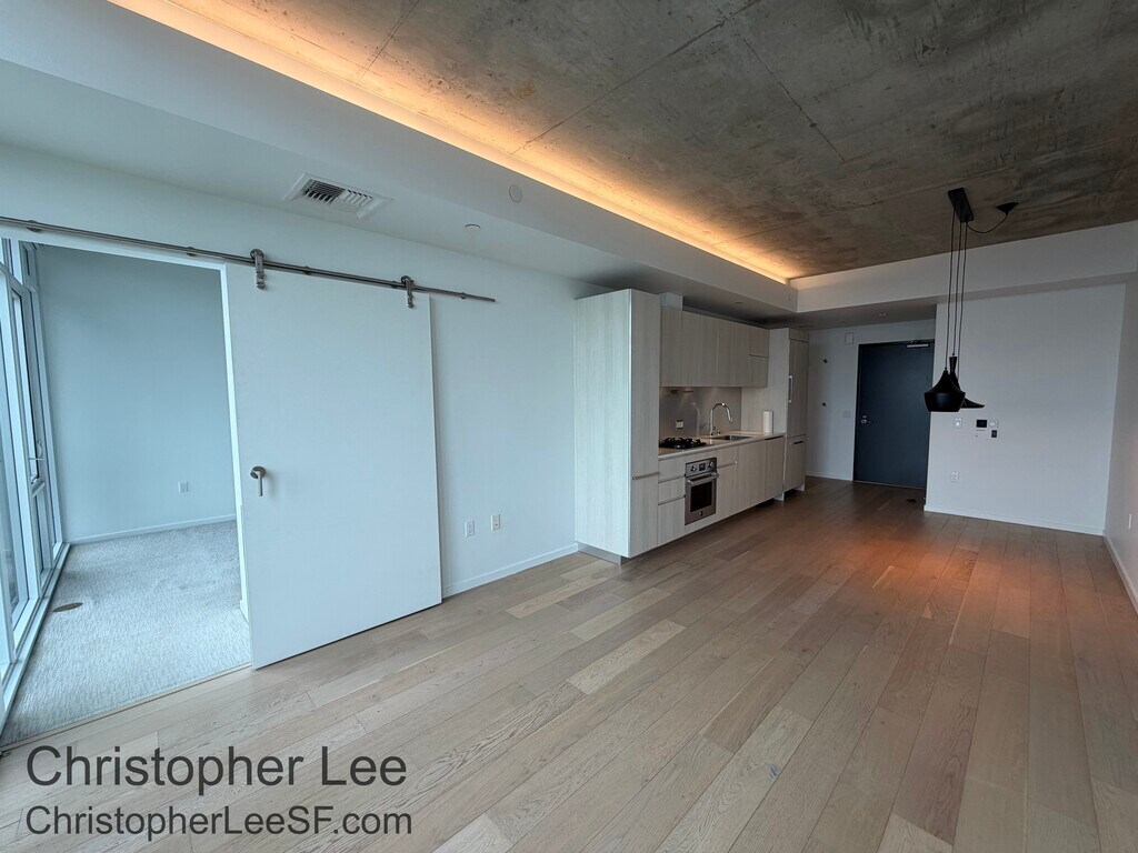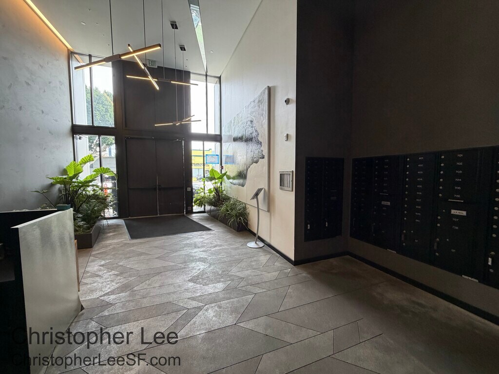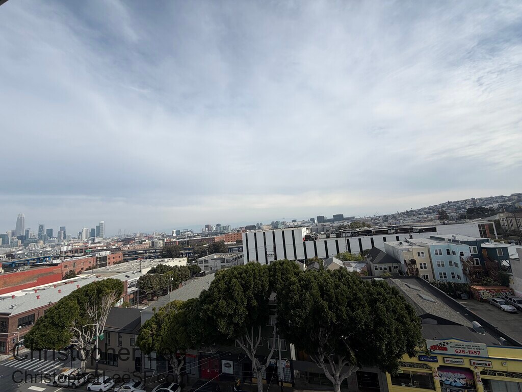 Upper-floor 1BR + Den in a modern 2016 building with sweeping Bay Bridge and San Francisco skyline views. Ideally located on the border of the Mission and Potrero Hill, this home offers unbeatable access to transit, dining, and daily conveniences. Caltrain (4th & King), BART (16th & Mission), tech shuttle stops, and major freeways are all close by. The apartment is a 1 bedroom + den, 1 bath layout. The den features a built-in full-size Murphy bed, making it ideal as a second bedroom, guest room, or dedicated home office. The bathroom includes sleek glass shower doors, and the unit is equipped with in-unit washer and dryer, central heating and A/C, and custom closet systems throughout. The building offers full-service amenities, including a 24/7 doorman, secure package handling with a lobby attendant, and a stunning rooftop deck with multiple grills, trellises, and a living plant wall—perfect for entertaining or relaxing. Additional features include a secure storage cage, bike storage, and an assigned parking space in a protected garage stacker ($400/month). Daily errands are effortless with Trader Joe’s, Whole Foods, Gus’s, Rainbow Grocery, and Safeway all within a 5-minute walk, plus easy access to the best restaurants and cafés in the Industrial Mission. Water and trash are included. A rare combination of views, location, modern comfort, and full-service building amenities.