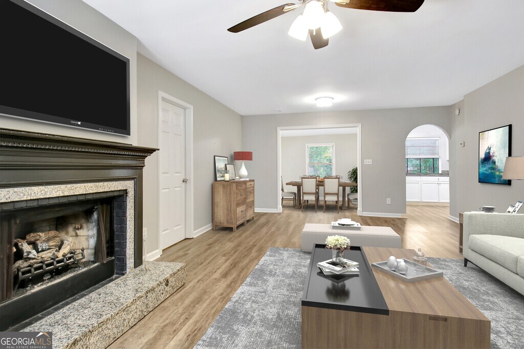 This meticulously maintained 4-bedroom, 2.5-bath rental home in Peachtree City offers comfortable living with modern updates in the heart of the sought-after Starr's Mill school district. The main floor features a spacious primary suite with an ensuite bath, a large living room with a cozy fireplace, and a dining area that opens onto a private deck overlooking the serene, wooded backyard. The BRAND NEW kitchen boasts white cabinets, quartz countertops, and stainless steel appliances. Conveniently, the laundry room is also on the main floor. Located close to Starr's Mill High School, Rising Starr Middle School and Peeples Elementary, this home also provides access to all the fantastic amenities Peachtree City has to offer, including golf cart paths, parks, and shopping. Don't miss the opportunity to rent this beautiful home! MLS ID 10710539