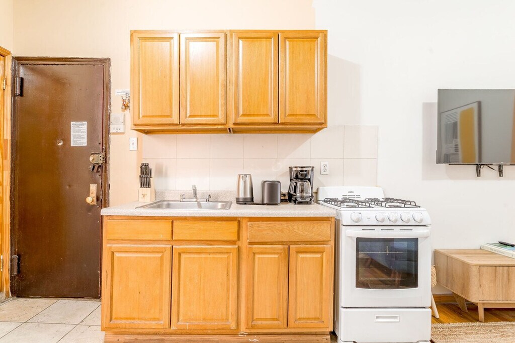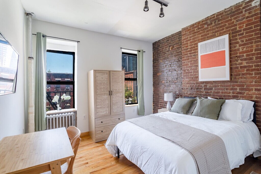 Feel at home in this charming Midtown West 2-bedroom, 1-bathroom furnished apartment. This home is located on the 4th floor. This lovely apartment is located within walking distance of Times Square and comfortably sleeps 5. Features like wireless internet, a flat screen TV, and standard kitchen appliances provide all the comfort of home. Exposed brick and hardwood floors add a hint of charm. The kitchen is fully equipped with all utilities necessary. This centrally located apartment is near many attractions. Move-in and start your living experience at this apartment.