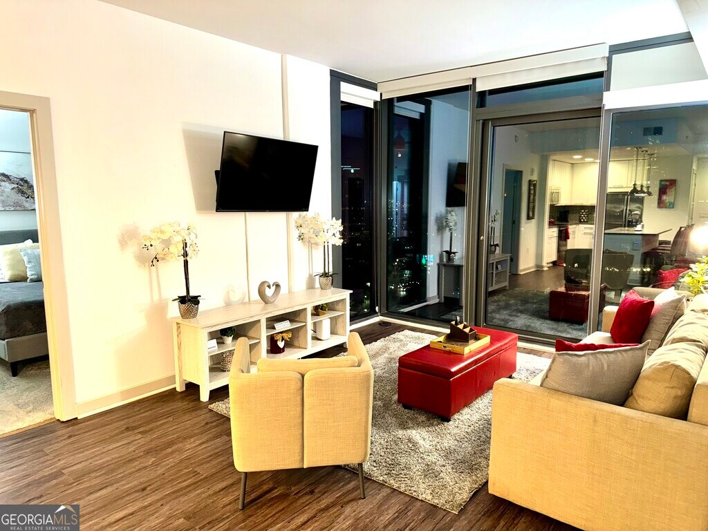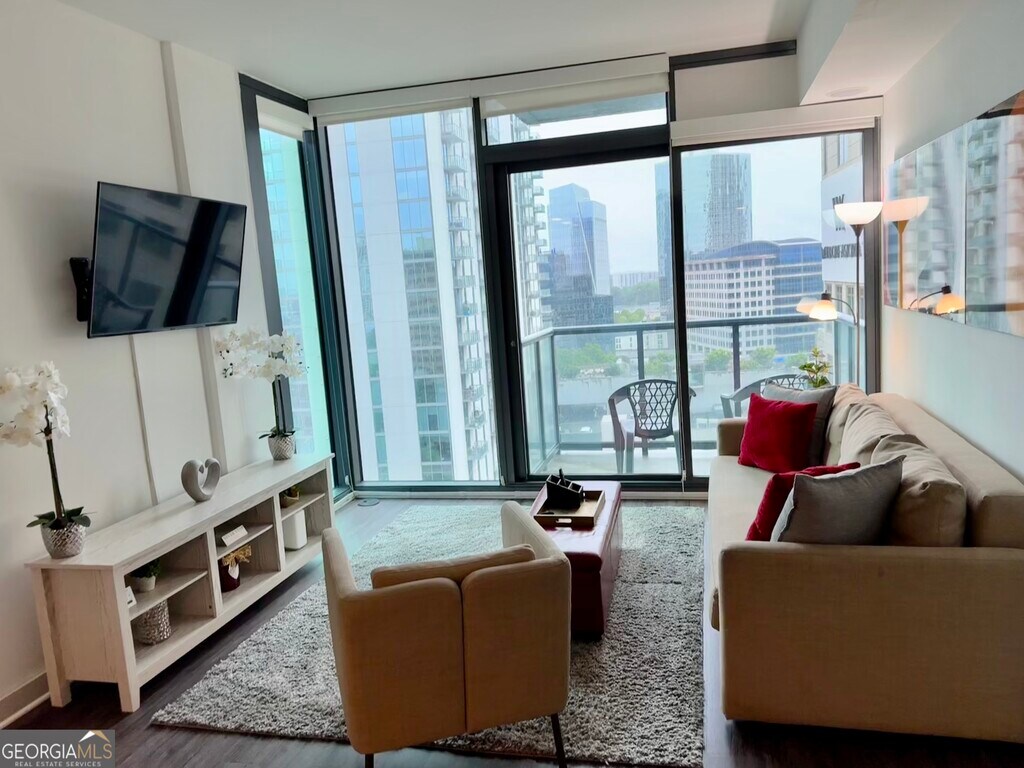 Fully furnished modern 2 bed/2 bath private corporate apartment with floor to ceiling windows and walk-out balcony located on the 19th floor in a beautiful high-rise community in the prestigious upscale area of Buckhead, Atlanta. The corporate suite offers a spacious roommate floorplan with great amenities and essentials for a pleasant and memorable stay. All utilities included. No smoking, pets, or parties. AMENITIES INCLUDED: 3 Flat-screen 4K Smart HDTV with the latest streaming apps, free internet/Wi-Fi, Master bedroom with a king bed and in-suite master bathroom, guest bedroom with a queen-size bed, walk-in closets, smart lock, fully equipped kitchen with stainless steel appliances, granite countertop, in-suite washer & dryer, city and pool view from the walkout balcony, bed linens, towels and much more. COMMUNITY AMENITIES: Concierge service, City views, 24-hour fitness center, rooftop swimming pool, clubhouse with kitchenette, outdoor lounge areas, outdoor grills, outdoor fire pit, outdoor dining, secured covered parking garage, business center with work areas equipped with public computers and much more. OTHER COMMUNITY AMENITIES: Buckhead Marta Train Station, Lenox Mall, Phipps Plaza, entertainment, grocery stores, medical facilities, beauty shops, great restaurants and rooftop lounges are within walking distance.
