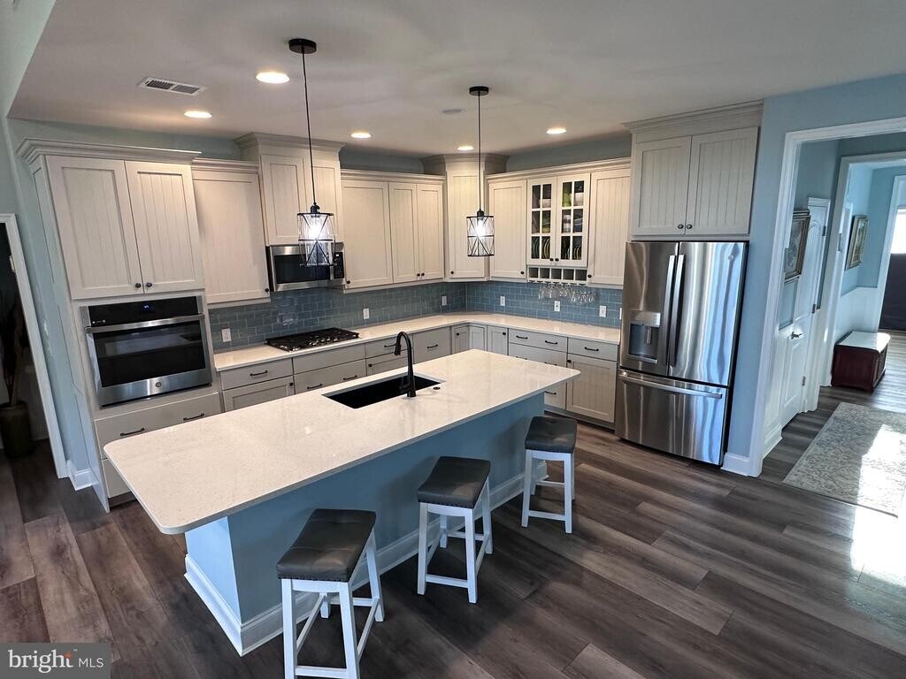You can have it all with this barely lived in, Ultra-Modern, Energy Efficient Custom Built Schell Brothers Tidewater Landing home backing to Love Creek. The exterior wows at first sight with twin front porches and a 2-car garage. The Coastal Chic interior has a pleasing color palette hand selected for a soothing appeal and the wide-open concept floorplan is a dream. Premium Laminate Flooring adorns the Main Floor, recessed LED lighting throughout, a main floor Study, Laundry & Powder Room for convenience. The Great Room has soaring ceilings, a gas fireplace & a French door to the rear deck. The Gourmet Kitchen is the Centerpiece w/a superb Quartz topped Island, gorgeous glass tiled back splash, convection wall oven, refrigerator, microwave and gas cooktop. The attractive First Floor Owner’s Suite with a serene view has dual walk-in closets and a luxurious bath with dual sink vanity, custom tiled walk-in shower, and soaking tub. Upstairs the picturesque Loft Area is a great casual entertaining space and is the impressive backdrop to the additional Three Generous Bedrooms & Two Additional Striking Full Bathrooms. One Bedroom has a French door leading to the upper front balcony. Two of the bedrooms have walk-in closets and one has two closets. For your storage needs there is gigantic walk-in unfinished space. The Landscaped Lawn has an irrigation system, and the entire yard is maintained by the HOA, paid for by the Owner. The Rear Yard borders the tree-lined waters of Love Creek where you can enjoy kayaking, canoeing, paddleboard & fishing, and has a private community launch. The Amenities are all encompassing and an ideal way to spend your time away from your home socializing or gathering with family & friends. The Owner is paying the HOA Fee for you to enjoy the Gorgeous Club House with Indoor & Outdoor Bars, Picnic Areas w/Grills, Social Seating Areas, Firepits, Pool Tables, Pickleball/Tennis Courts, Playgrounds, Swimming Pool w/Lounges & Umbrellas, Nature Trails, Walking & Jogging Paths all in a Pet Friendly environment. Nearby Bike Trails are available, and you will be only about 6 minutes from Downtown Lewes. This is a phenomenal place to live and love with all this beautiful home and Impressive Community will offer you. Book your tour today while the opportunity is here! Photo Images reflect prior Listing Photos.