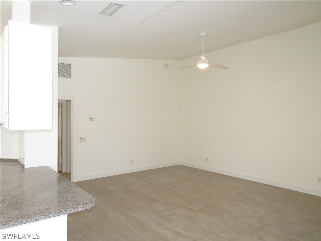 An Immaculate Annual Unfurnished Rental in Island Walk. A Capri Attached Villa,2 Bedroom,2 Bath,2 Car Attached Garage with a Caged Lanai and a privacy wall. One floor living and no stairs. Extended Living Area. 1680 sq. ft. under air conditioning. Newer ceiling fans. Quartz Kitchen Countertops.New Flooring throughout. Newer Hurricane windows and Doors,No Shutters to manually put up or contend with. Take a leisurely walk to the Towncenter where you can partake of all the Amenities that Island Walk is so famous for. There is a beautiful Resort style pool,a lap pool,a fitness center,a restaurant,tennis courts,pickle ball,bocce,a gas station,a beauty salon,a nail salon,a car wash and miles and miles of walking paths and bridges that meander around all the beautiful lakes in Island Walk. Resort Living at its finest.
