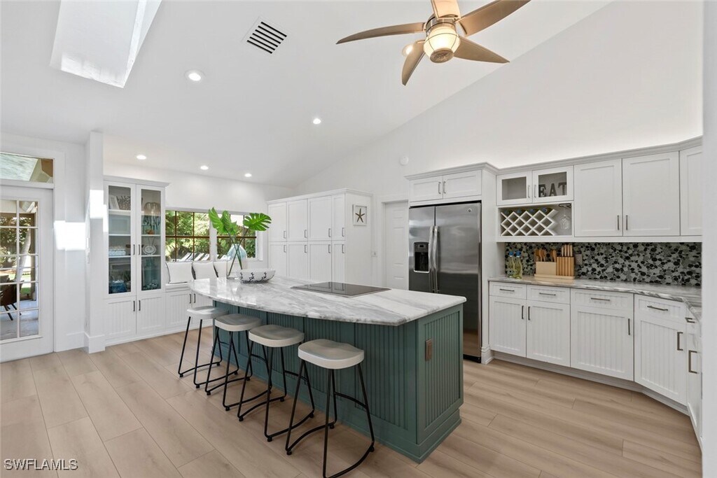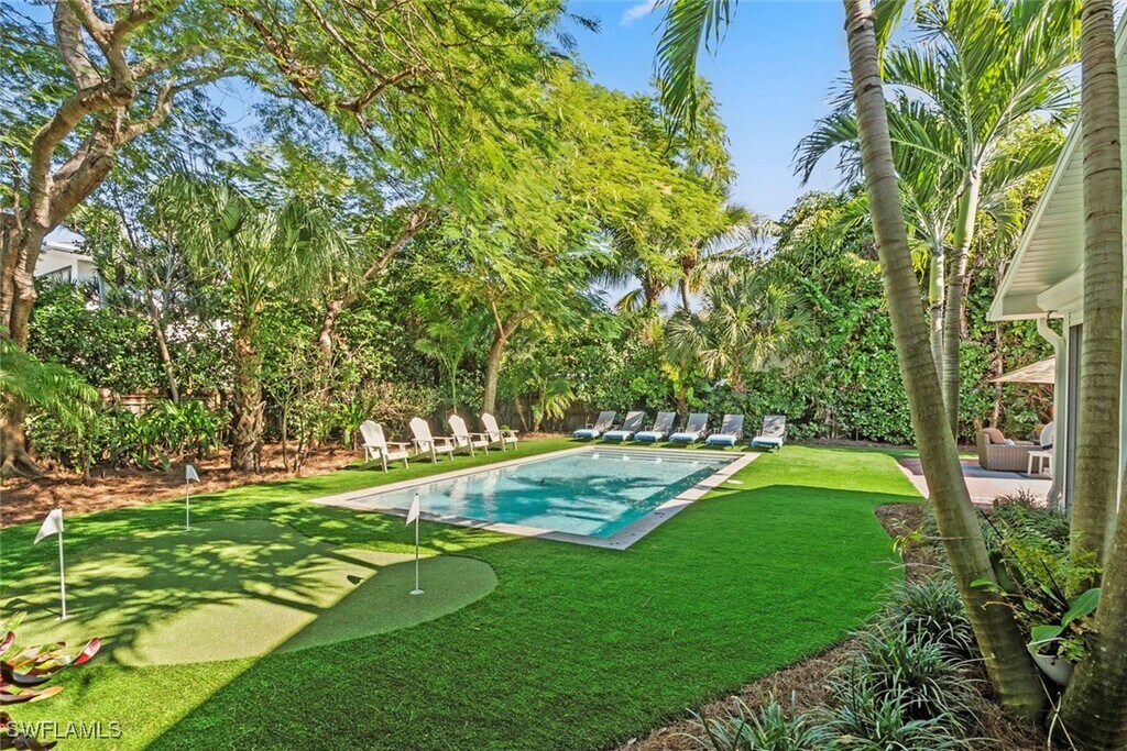 Exquisitely renovated (11/2025) Olde Naples beach home. With soaring ceilings and boundless outdoor living spaces,this house flows exceptionally. Providing four bedrooms & three baths,this sanctuary is situated in one of the finest locations of Olde Naples. The outdoor space feels as if one walked into a botanical garden. Relax pool side,or dine al fresco under the beautiful canopies of mature royal poincianas,palms and mango trees. Walk to both the beach and newly completed Four Seasons Naples Beach Club. With a spacious,open floor plan,some of the features include wide plank flooring,Arhaus/Restoration Hardware/West Elm furnishings,Wolf induction cooktop,marble/tile bathrooms,shiplap walls,skylights,heated pool,putting green and much much more. The master bedroom oasis includes an office desk space and reading sofa. Each bedroom is outfitted with extremely comfortable,high end mattresses and linens. All aspects of this renovation,design and furnishing were intentional; taking inspiration from the natural surroundings of Naples,you truly experience a coastal,luxurious experience. This property has not experienced any flooding in the past storms. 339 4th continues to be meticulously maintained and cared for. True pride of ownership is felt as soon as you walk through the door. Secure one of Naples' finest beach houses today.
