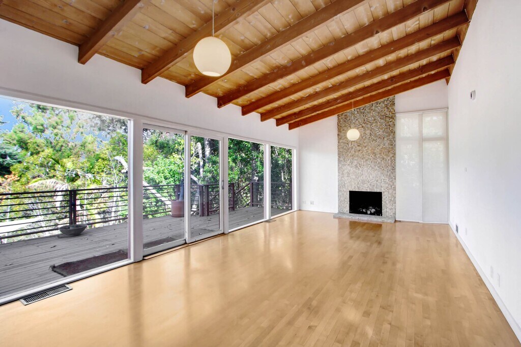 Experience mid-century modern living at its finest in this stunning hillside home, nestled in the serene San Rafael Hills community of Pasadena. This architectural gem boasts a wrap-around exterior deck that seamlessly connects to floor-to-ceiling windows, offering breathtaking views of Northeast Los Angeles and vibrant sunsets. Step inside to discover exposed beams and original oak hardwood floors that perfectly complement the dramatic travertine fireplace. The galley kitchen, featuring granite countertops and a Viking refrigerator, overlooks the open living and dining area, ideal for entertaining guests. The main home includes two bedrooms, a large den/office, and a full bath, while a separate downstairs studio with a custom shower provides a versatile flex space for a gym, office, in-law suite, or extra bedroom. The downstairs studio opens to a private garden oasis, perfect for relaxing or hosting outdoor gatherings. Modern conveniences include a Tesla EV charger, washer and dryer, and all kitchen appliances. Pets are welcome (ask for details). A one-month refundable security deposit is required, and tenants are responsible for utilities. This beautiful home is available now, don’t miss the opportunity to live in your own Pasadena paradise! You’ll also be just minutes from trendy Highland Park, with easy access to Figueroa Street’s popular cafés, boutiques, and nightlife, as well as York Boulevard’s vibrant restaurant scene.