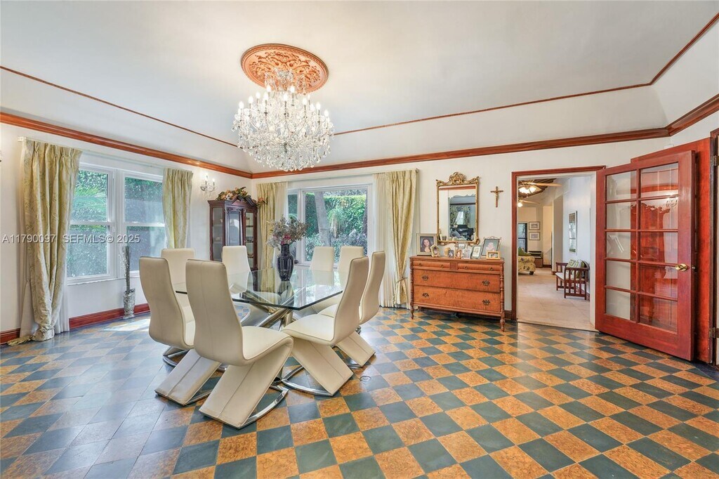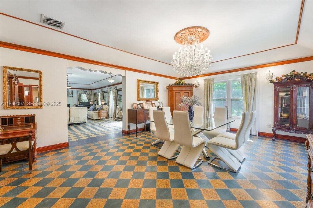 Quintessential Miami Shores Mini-Mansion Designed by Walter De Garmo. This beautiful single-family residence blends timeless architecture with modern comforts. A light-filled entryway opens to the expansive great room, featuring high ceilings, elegant wood beams, and a cozy wood-burning fireplace, perfect for gatherings. Hardwood floors, plus impact windows, provide comfort and efficiency. The kitchen is a chef’s delight with gas cooking, granite countertops, and SS appliances. Features include a versatile nanny room and a fenced backyard ideal for entertaining or relaxing outdoors. This large home offers a unique opportunity in one of Miami’s most sought-after neighborhoods, just a short walk to restaurants and shopping.