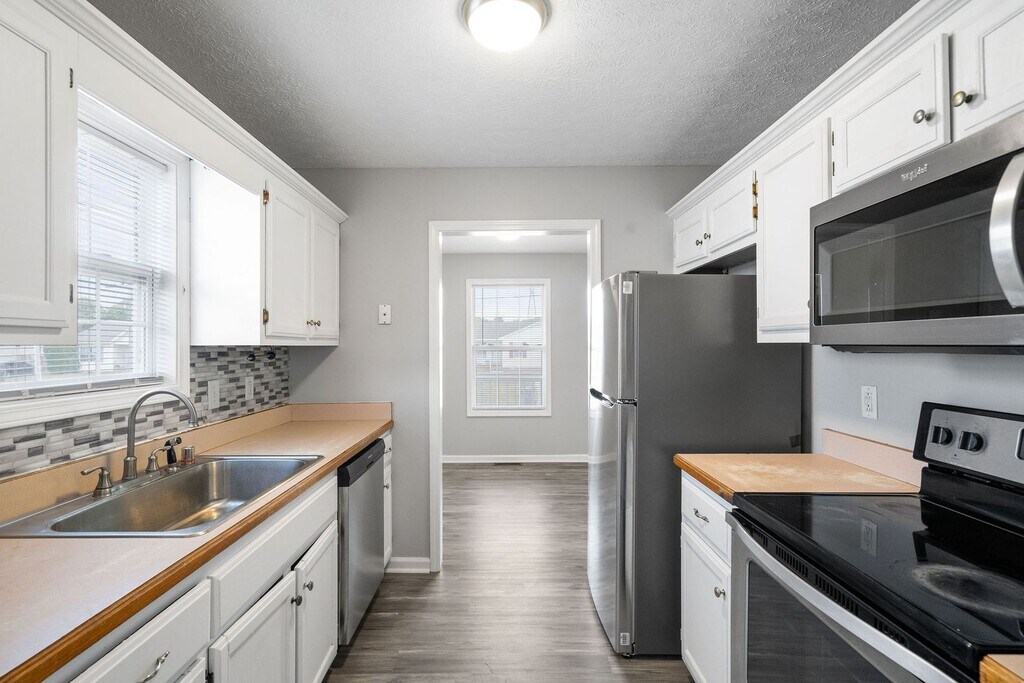 339 Pioneer Drive is a beautiful, newly renovated home for rent in Oak Grove, KY - just minutes from I-24 and Fort Campbell Blvd. when you enter the front door, you'll be in the living room. Through the living room is the hallway leading to the bedrooms and bathroom. To the right of the living room is the dining area. The dining area has a window to allow the room with natural light! To the left of the dining area is the galley-style kitchen. The kitchen comes equipped with a stove, fridge, dishwasher and microwave. Adjoining the kitchen is the utility room that houses the washer and dryer connections. Back through the living room and into the hallway, you'll have one bedroom on your right, one bedroom on your left and a full bathroom in the center. The full bathroom has a single sink vanity with an extended countertop to allow for extra storage space and a shower/tub combo. The primary bedroom is spacious enough for a bedroom set and has a private full bathroom. The full bathroom has a standing shower and single sink vanity with a wall-to-wall countertop. This residence also features a back deck and fenced backyard! Pet Policy: Pets are accepted with an approved pet screening, $350 non-refundable pet fee per pet and $25/monthly pet rent per pet. All pets MUST be approved by pet screening before they can be introduced to the property. *Photos of properties are for general representation and floor plan purposes only. Paint color, appliances, flooring and other interior fixtures may be different. A viewing of the actual residence can be scheduled upon approved application. *