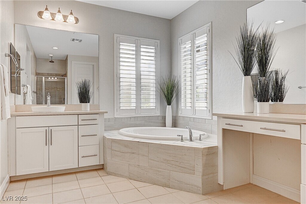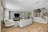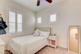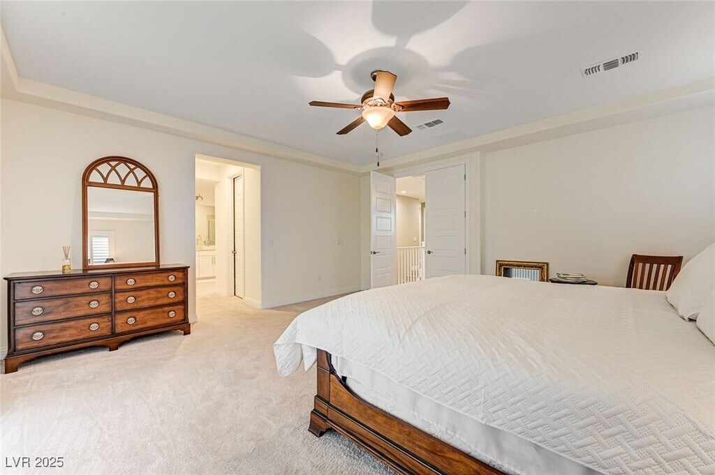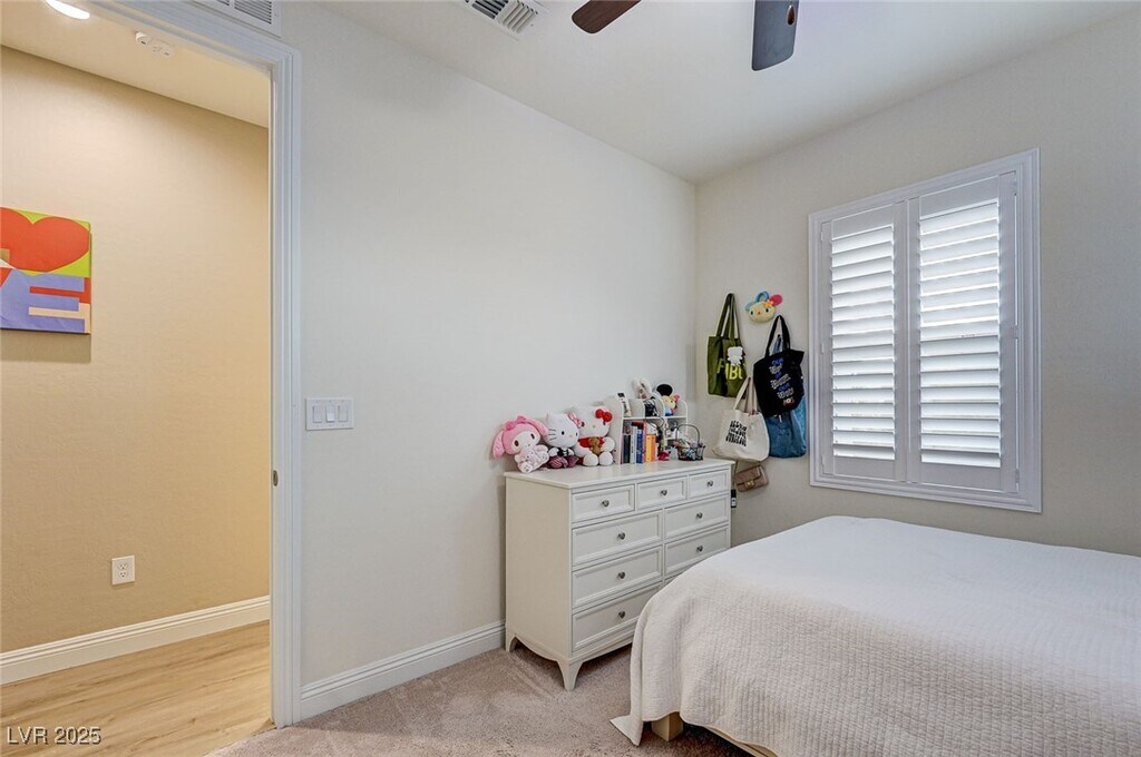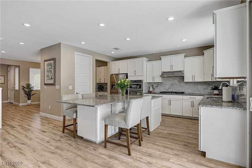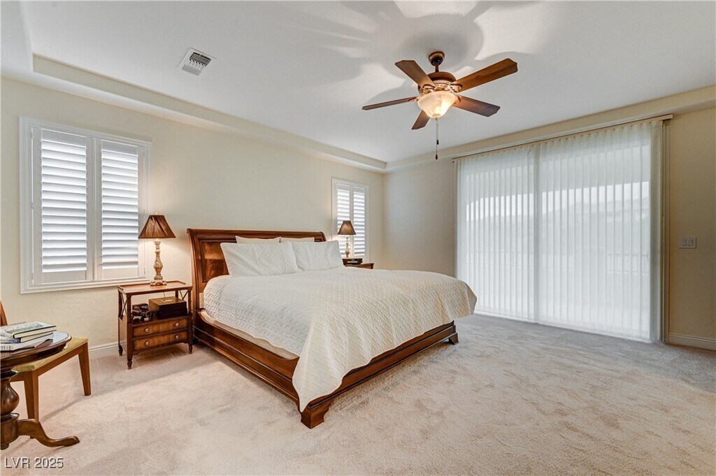 Located in a desirable gated Summerlin community, this beautifully upgraded 4-bedroom, 3-bathroom home with a den and loft offers the perfect blend of style and comfort. The open-concept living area features stone accent walls, custom paint, luxury vinyl flooring, and plantation shutters throughout. The modern kitchen is a chef’s delight with a large center island, granite countertops, stainless steel appliances, and plenty of cabinet space. Downstairs includes a private den—ideal for an office or gym—and a guest bedroom with a full bath, perfect for visitors or multi-generational living. Upstairs, the spacious primary suite boasts a balcony with stunning mountain views, a walk-in closet, and an elegant ensuite bath. The loft area provides additional flexible space for lounging or entertainment. Enjoy outdoor living in the low-maintenance backyard, complete with a covered patio and paver design—perfect for relaxing. Located near top-rated schools, parks, trails, and Downtown Summerlin.