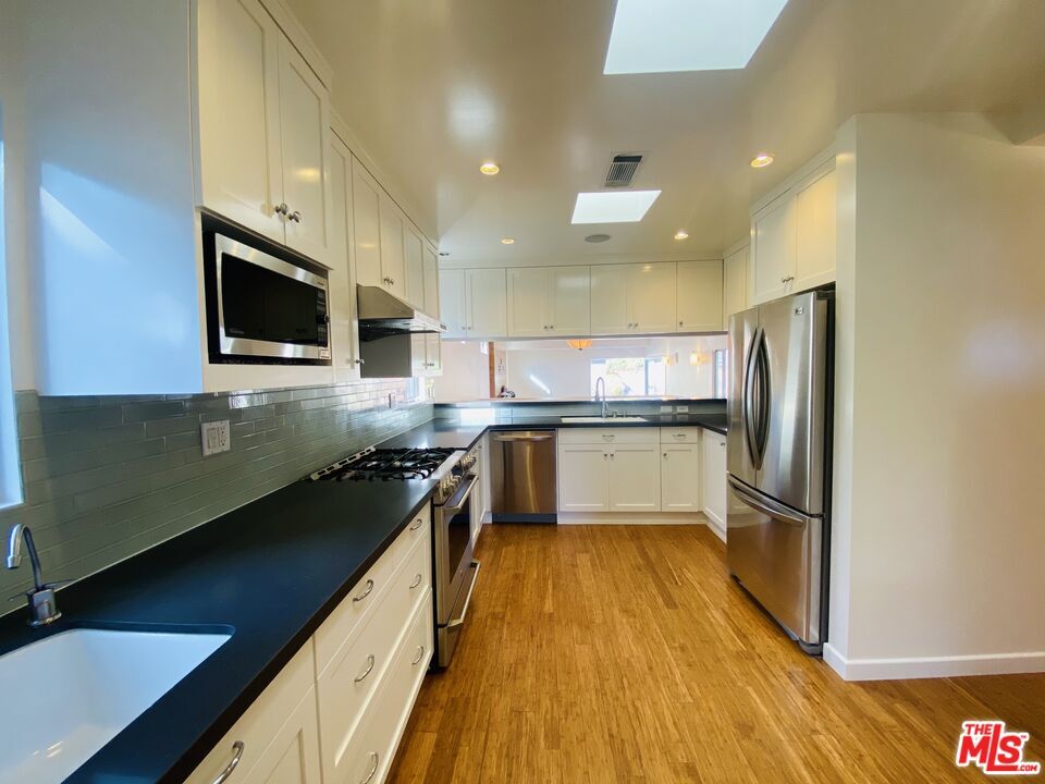 From the sparkling pool to the custom designs, you'll immediately fall head over heels with this beauty! The living room, kitchen and family room all intertwine so everyone is always a part of the conversation! The cook's kitchen has beautiful Caesarstone countertops, cabinets galore and is fully equipped with a stainless-steel fridge, stove, dishwasher and microwave. There is also a stackable washer and dryer. The living room has a cozy fireplace and sliding doors that lead out to the backyard. A few steps down from the living room is the family room. It has a custom Surround Sound System, flat screen TV rack and an amazing view of the pool from the glass wall and sliding glass door. The master bedroom also has large windows allowing you to take in a perfect view of the pool. The walk-in closet has custom built-ins and the en-suite bathroom includes dual sinks with a stand-a-lone shower and deep soak tub. The other two bedrooms are nicely sized and have custom built closets. There is a 2-car detached garage located at the rear of the property with an automatic garage door opener. This fabulous home also includes sky-lights, recessed lighting and custom windows throughout. Located in a prime Mar Vista neighborhood, it is seconds away from the Mar Vista Recreation Center, Trader Joes, Starbucks and has easy access to the freeway. Terms: Minimum one-year lease. Security deposit is equal to one month's rent on approved credit. Pets allowed with breed and weight restrictions. Please contact Martisa at or to schedule a showing! MLS# 26667539
