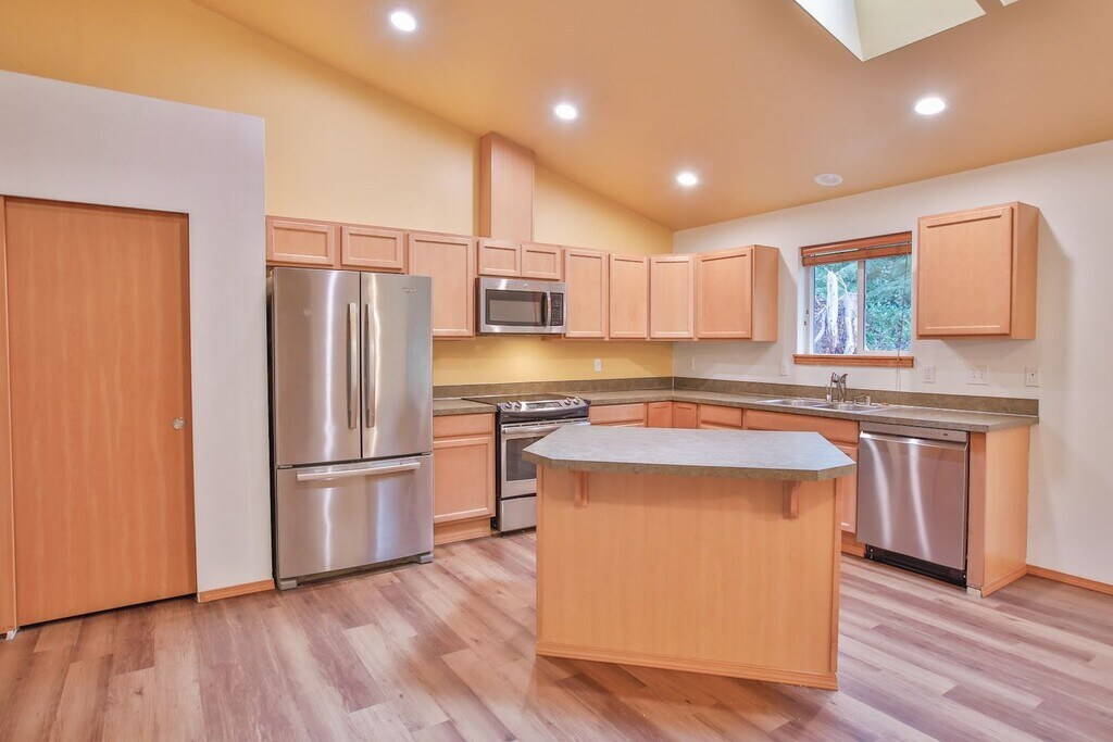 Recently refreshed with new flooring and upgrades throughout and is as neat as a pin! Lovely large deck greets you at the entry and is perfect for entertaining and enjoying those lovely Whidbey evenings! This home located on East Harbor has three bedrooms and two baths and truly a sense of privacy! Spacious single-level home boasts a great room feel with an expansive living, dining, and kitchen concept and multiple skylights! Propane fireplace in the living area warms the entire room! This home also comes with a private beach key to the community beach with picnic area and only can be accessed from residents! Primary bedroom is quite large, and the attached bath has a stand-alone shower, sinks and a walk-in closet! This home has new flooring throughout, new dishwasher, new updates and is ready now! Washer and dryer are included and located in the garage! Tenant pays all utilities and maintains easy care landscape! This is a smoke free home and property! One dog under 25 pounds or one cat, pets must have references and an additional pet deposit applies. Available Now!