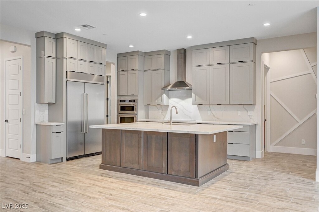 Welcome to this exceptional Inspirada residence featuring 3 bedrooms, 3 bathrooms, with solar. The expansive living and dining areas feature soaring ceilings and abundant natural light from oversized windows. The family room is highlighted by a custom tiled fireplace wall, adding both warmth and elegance to the space. The chef’s kitchen is equipped with state-of-the-art stainless steel appliances, quartz countertops, soft-close cabinetry, and an oversized center island ideal for meal preparation and entertaining. A private office with glass doors offers an optimal workspace. The primary suite serves as a serene retreat, featuring a custom walk-in closet and a spa-inspired bath with dual sinks and a zero-entry glass shower. The low-maintenance backyard is designed for entertaining with artificial turf and a built-in fire pit. Residents of the Castano community enjoy access to a pool and park area, with Montagna Park conveniently located nearby.