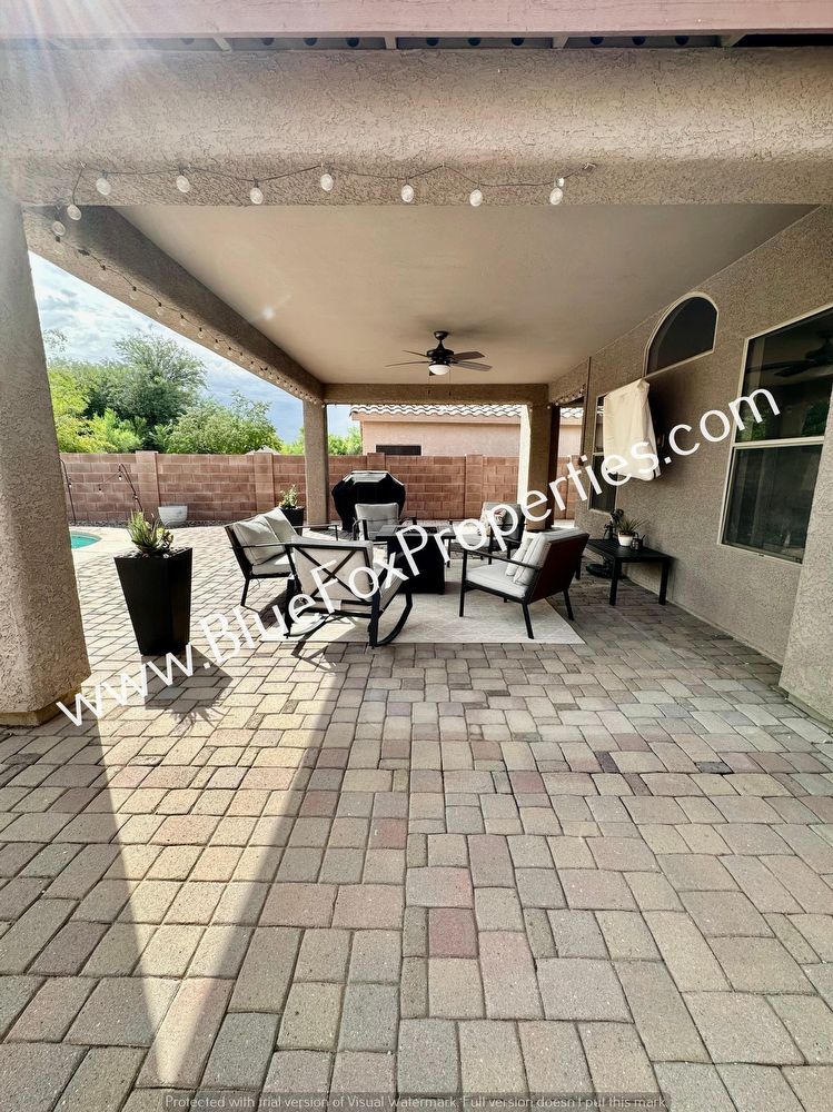 Stunning single-story home in gated Rancho Agua Dulce! Walk into wood plank tile, cool tones, and open-concept living! The chef's kitchen is highlighted with custom light fixtures, gorgeous quartz, stylish backsplash, and stainless appliances. French doors welcome into the expansive master suite with a spa-like master bath including marble counters, custom tile work, and a huge walk-in closet with built-ins! The backyard is ready to entertain with an extra deep-covered patio and a sparkling pool! Don't miss this very special opportunity and apply today! Gate access code 2137 This home will be available within 3 days of an approved application for a 1-year lease. The rental rate is $2,195.00 per month, and the security deposit is $2,295.00. Owner pays HOA fee and pool maintenance. Tenant to maintain water levels. There is a $125 tenant administrative fee, per tenant or cosigner. If pets are allowed and approved, there is a monthly pet fee ranging from $25 - $100 per pet, plus a one-time $150 non-refundable pet fee, per pet. The monthly fee is determined by the paw rating assigned by PetScreeningdotcom. Most homes allow 2 pets unless otherwise stated in the property description. Our residents are automatically enrolled in our Resident Benefit Package. The cost of this program is $35 per month. For more information regarding this program, please go to bluefoxpropertiesdotcom . Every adult age 18 and over must complete an application. The application fee is $55 per adult. The application process includes credit, criminal, previous rental history, employment, and income verification. Residents are required to obtain and keep liability and renter's insurance in full force and effect during the full term of the lease agreement and any subsequent renewals. The coverage must include at minimum the following: $20,000 renter's content coverage $100,000 tenant liability insurance coverage $10,000 renter's bodily injury coverage Our residents may purchase their own policy as long as Landlord and Agent are listed as "additional insured". It is important to note that "additional insured" and "additional interest" are not the same thing. If the policy provider will not name Landlord and Agent as "additional insured", our residents will have to find an alternate provider that will. Our residents must provide a copy of the policy to Blue Fox Properties, LLC prior to lease signing and prior to signing any lease renewal. If the copy is not provided prior to lease signing, Tenant will automatically be enrolled in the insurance policy provided through Blue Fox Properties, LLC and charged accordingly. The cost of this policy is $20. Our minimum rental requirements include the following: 1.The applicants' household verifiable gross monthly income must be 3 times the rental rate. 2.All our homes are offered as non-smoking. No smoking is allowed on the premises, inside or outside the home. 3.Resident Score from TransUnion—an estimate of rental risk based on credit data—requires an average score of 600 across all applicants. 4.If this property is located within the City of Tucson, housing vouchers will be considered. 5.Applicant to provide proof that debts to previous landlords have been satisfied. An eviction can be grounds for denial. 6.No felonies for the past 10 years related to property damage, illegal substance manufacturing or distribution, or assault. Other criminal activity may be grounds for denial. 7.All pets are subject to approval. 8.No bankruptcies that have not already been discharged. 9. All current or pending collection accounts owed to any utility companies must be paid in full, with no exception, and must provide a receipt from the collection agency or utility company stating the collection fee has been paid or settled. 10. You must fill out an application on bluefoxproperties dot com. Applications submitted through any other site will not be accepted and Blue Fox will not be responsible for any refunds. Blue Fox Properties is an Equal Opportunity Housing provider. We are also licensed REALTORS. Click HERE to view our Resident requirements and costs