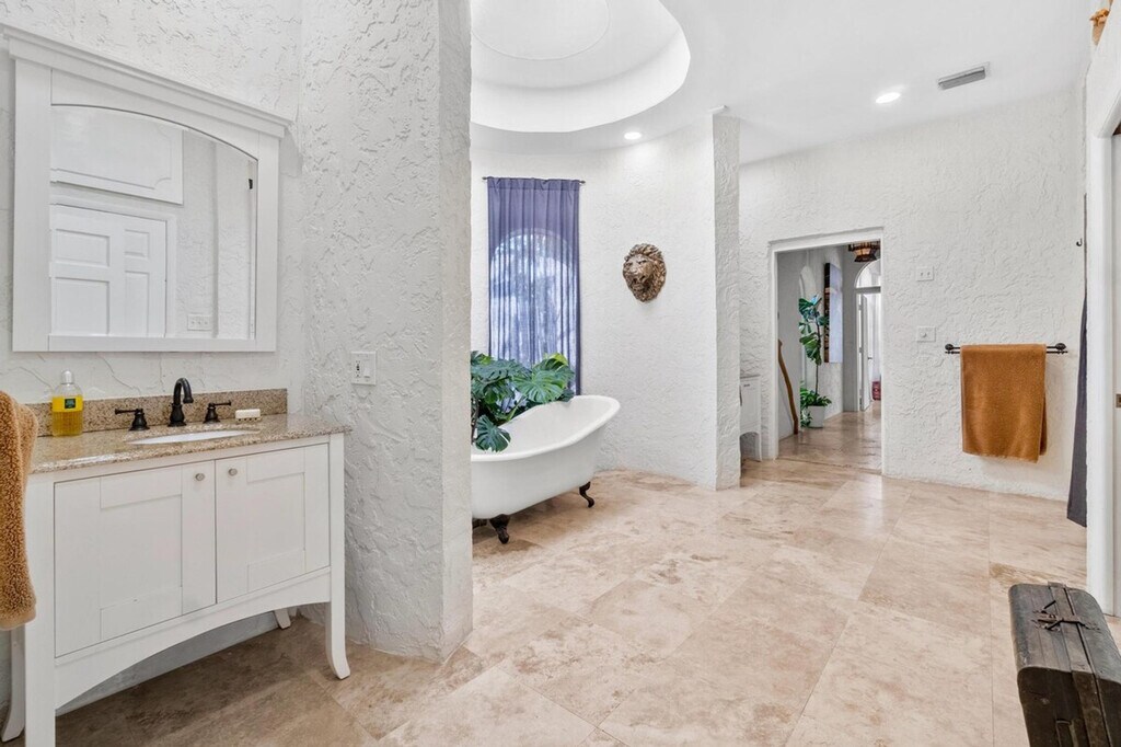 Feel at home in this unique 3-bedroom, 3-bathroom home with bright, open living spaces. This home offers walk-in closets, two balconies, and a rooftop patio with stunning views. This home offers a blend of privacy, style, and vibrancy. Enjoy outdoor spaces, including a resort-style pool surrounded by tropical landscaping. The chef’s kitchen invites you to create and savor. Retreat to cozy bedrooms for restorative sleep. The primary bath suite invites you to relax in a cast iron clawfoot tub or a spacious travertine shower. Available upon request are a private chef, daily housekeeping, or curated in-home experiences. Tucked away in one of St. Pete’s most centrally located neighborhoods, this home is minutes from Gulf beaches, the culture of Downtown St. Pete, and shopping, dining, and arts. Guests will be personally received by the host. A landscaper comes a few times a week for maintenance. All guests will undergo a background check prior to booking approval. [SI]
