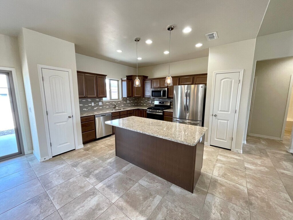 Come check out this immaculate 3 bedroom 2 bath home in the Southern Vistas Neighborhood today! This home has Granite counter tops in the kitchen and bathrooms, stainless steel appliances and washer and dryer included. Split floor plan for a nice and quiet master suite. The master suite has a large bedroom with a beautiful bathroom. The bathroom has dual sinks, custom walk in tile shower, separate toilet room, linen closet and large walk in closet. The guest bedrooms are located on the other side of the house on either side of a guest bathroom that has a tub/shower. The living room and kitchen are an open concept giving the home a nice spacious feel when you enter. The backyard is fully fenced with access for vehicle or trailer into the side yard. Large 3 car garage. Solar included for inexpensive electricity bills! Give us a call today at for information or visit our website at for more details and to APPLY NOW! Minimum 700 Credit Score. $2,775 Security Deposit. *Inquire about our Security Deposit alternative* No Co-Signers. Small dogs allowed at owners discretion.
