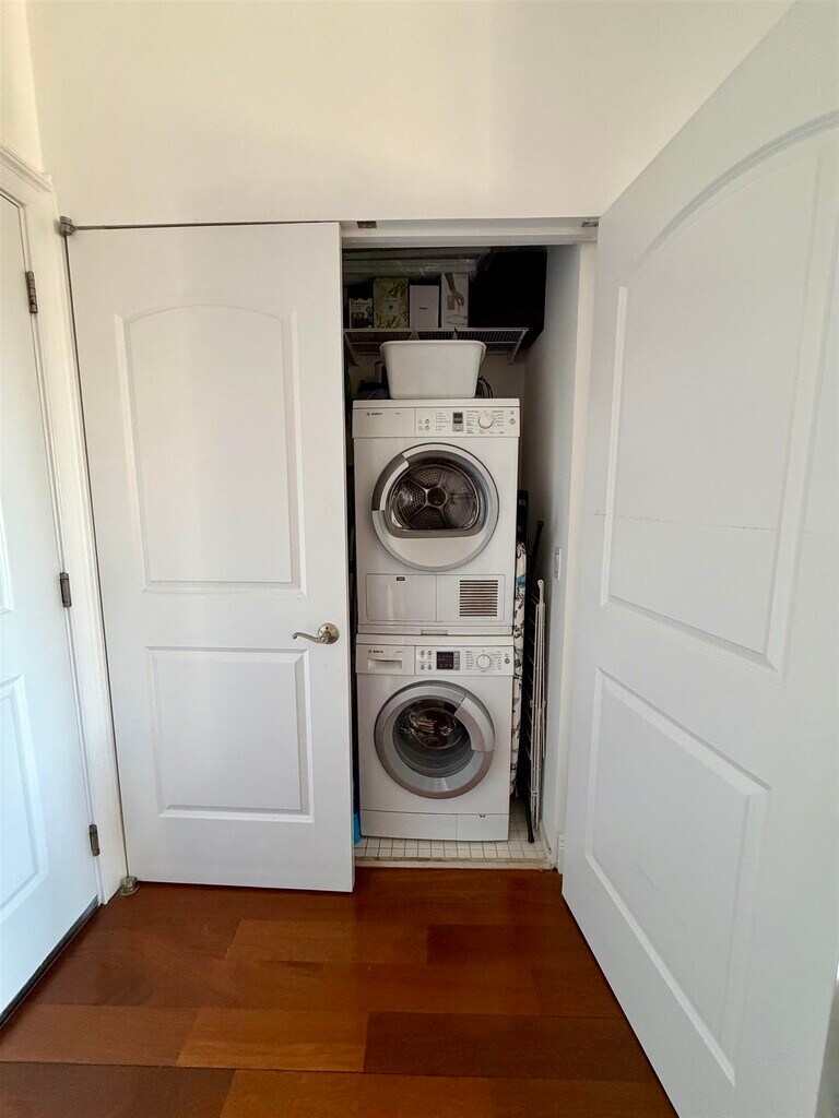 Live above it all in this spacious luxury one-bedroom, two-bath condo perched atop the Weehawken cliffs. Ideal for commuters, this top-floor residence is just moments from bus and ferry access to NYC and offers an oversized private terrace with floor-to-ceiling glass doors showcasing stunning NYC skyline views and unforgettable sunrises and sunsets. The open-concept kitchen and living area is perfect for everyday living and entertaining, featuring granite countertops, stainless steel appliances, 42†cabinetry, and a mosaic backsplash. Additional features include 9’ ceilings, crown molding, Brazilian hardwood floors throughout, Andersen windows, custom automatic shades, in-unit washer/dryer, and central HVAC. Reserved parking in a heated garage is included—an exceptional convenience in this highly desirable location.