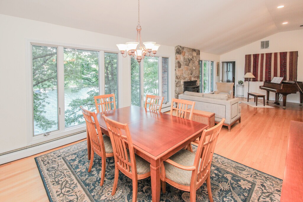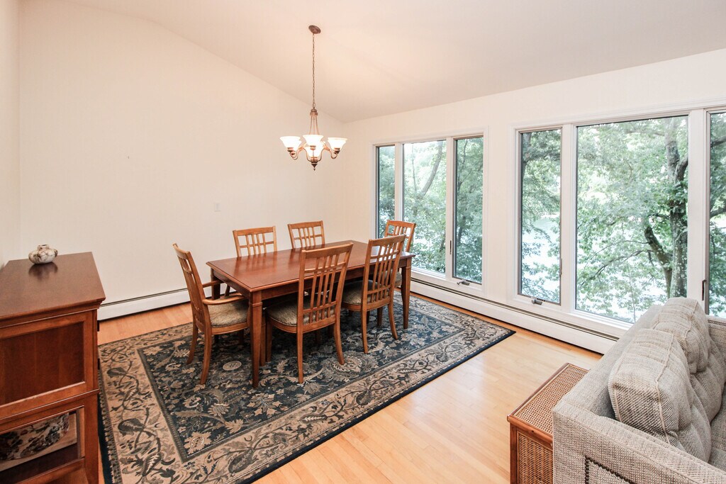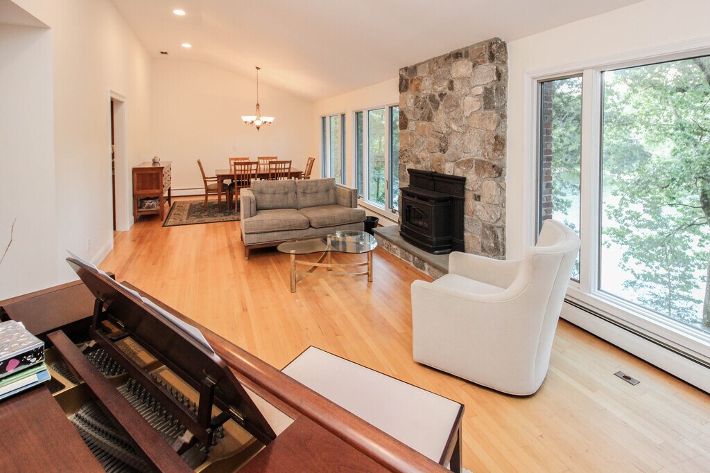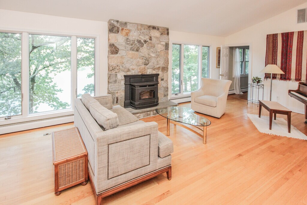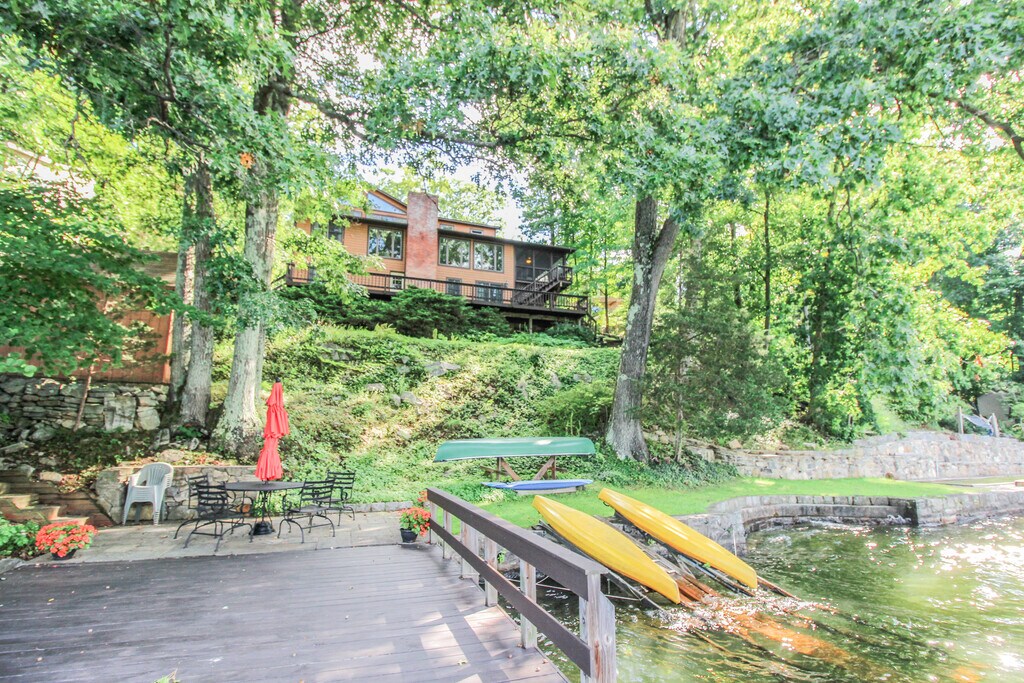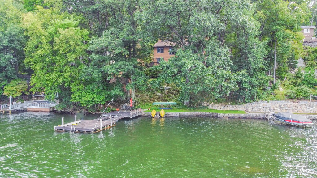 Nestled in the tranquil surroundings of Danbury, CT, this exquisite rental property at 34 40 Acre Mountain Road offers a unique opportunity to indulge in luxurious lakeside living. Lease available from September 5, 2025, through Memorial Day 2026, this direct waterfront home on Candlewood Lake presents 3 bedrooms, 3 full baths, and over 3,000 square feet of living space. Situated in a serene no-wake zone at the Lattins Cove end of southern Candlewood Lake, the property boasts 110 feet of direct lakefront, providing breathtaking, uninterrupted views of the water. Step inside to discover a beautifully updated interior featuring a modern kitchen with granite counters, stainless steel appliances, and sliding doors leading to a porch. The living room charms with vaulted ceilings, a striking stone fireplace, and expansive windows framing mesmerizing lake vistas. The primary suite offers a private sanctuary with vaulted ceilings, exposed beams, a spacious walk-in closet, and a spa-like bath with a soaking tub and separate shower. The lower level provides another bedroom, a generous family room with walk-out access, a full bath, and convenient laundry facilities. Outdoor living is elevated by a spacious deck overlooking the lake and a lakeside stone patio, creating the perfect setting for relaxation and entertaining. This turnkey home is offered fully furnished, inviting you to immerse yourself in the ultimate lakefront serenity and style.
