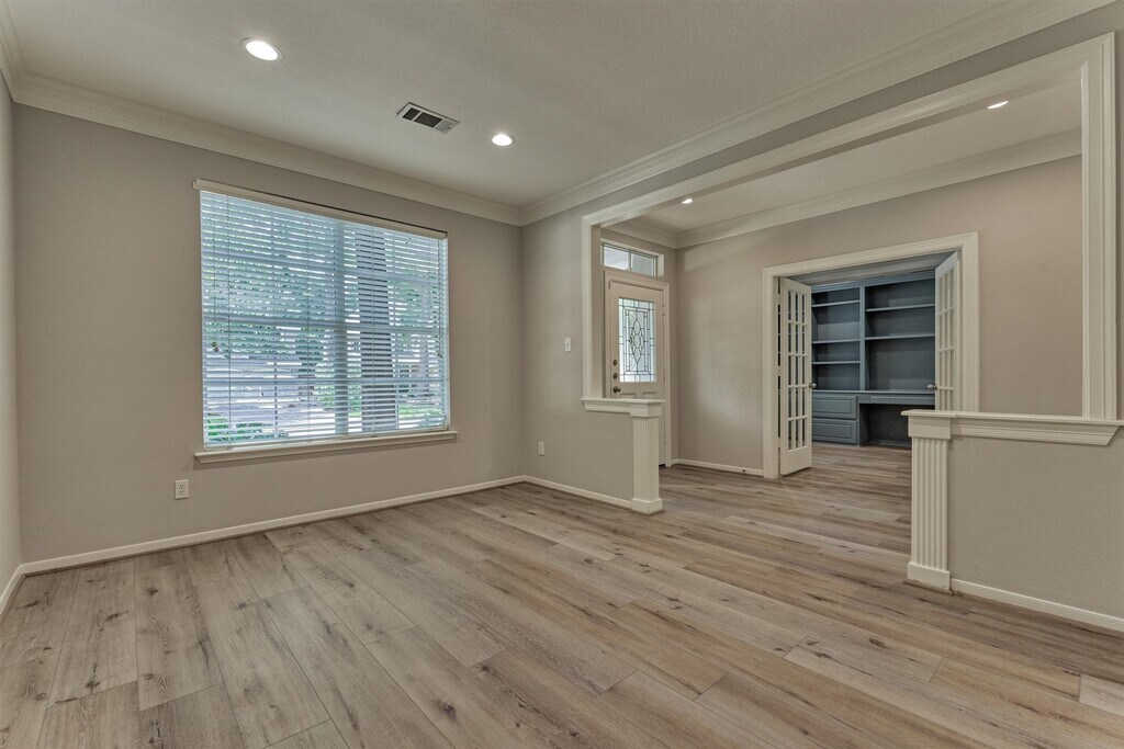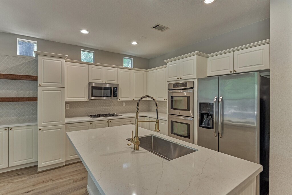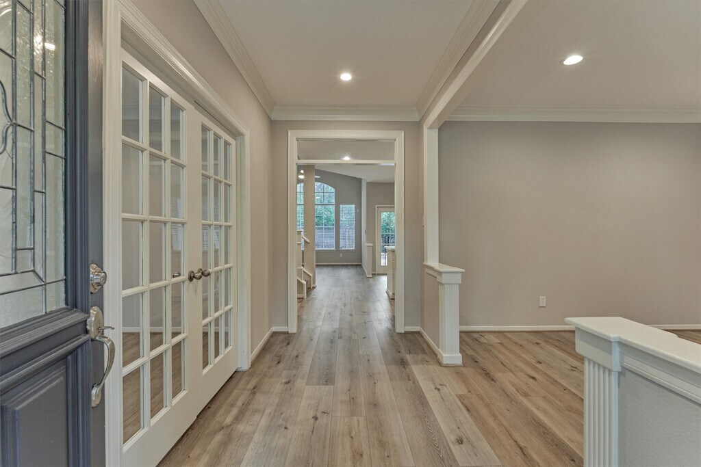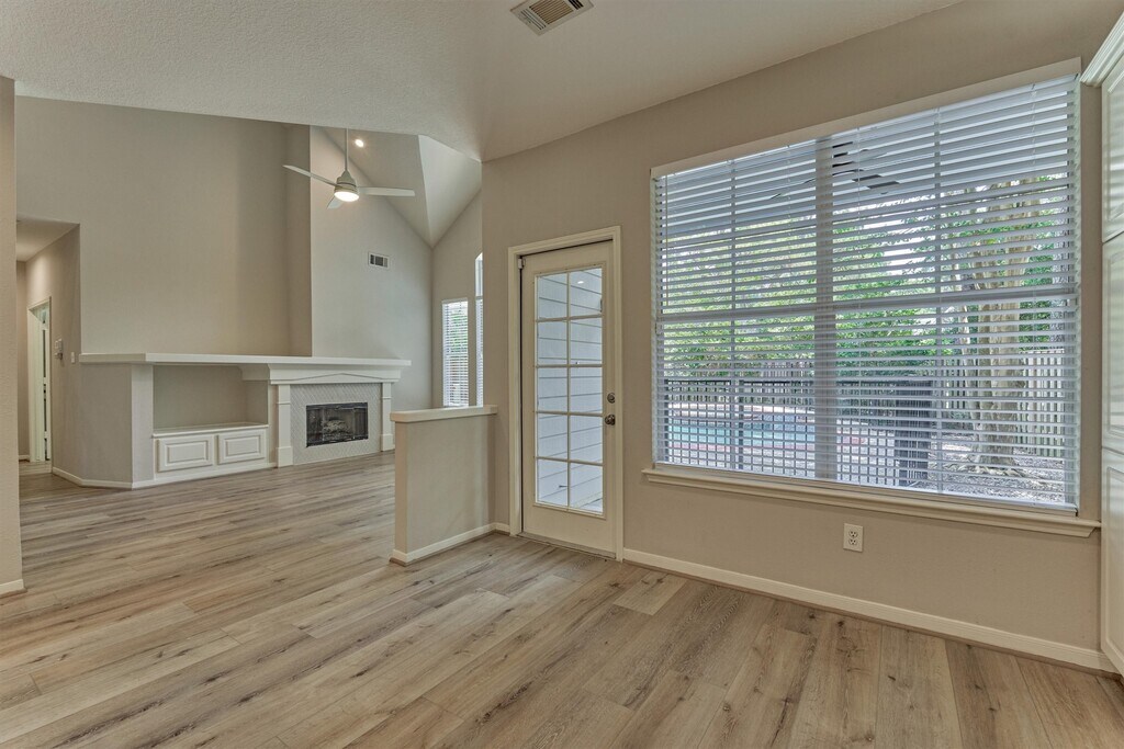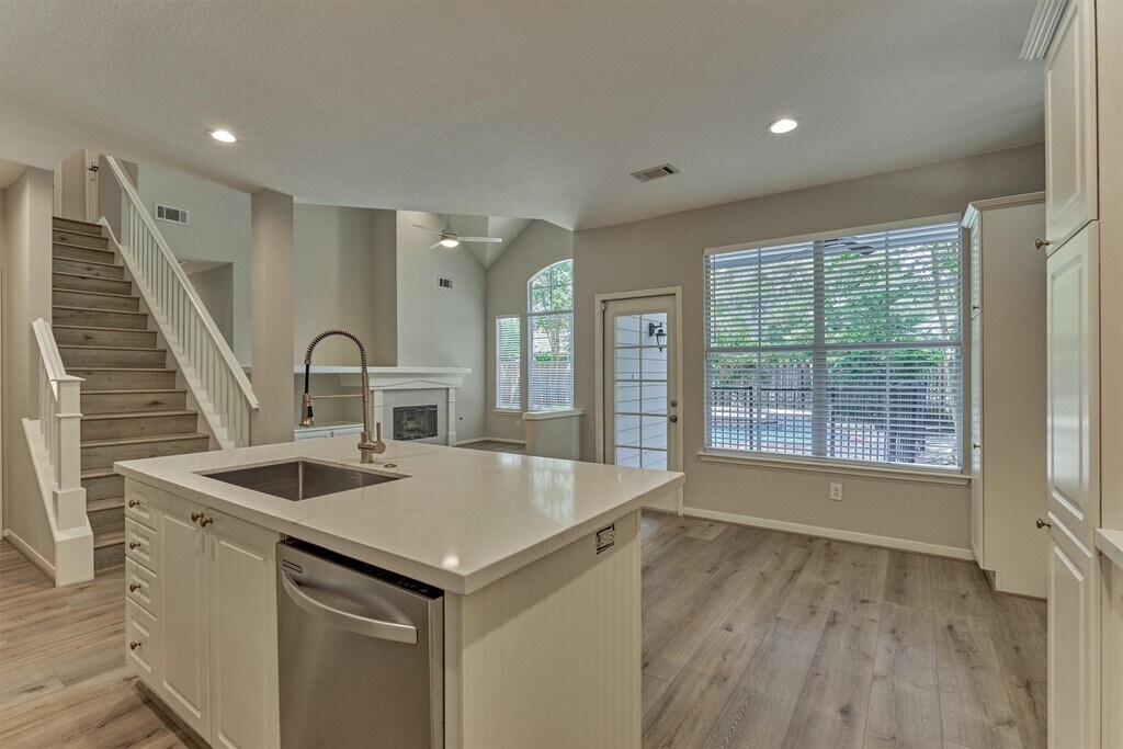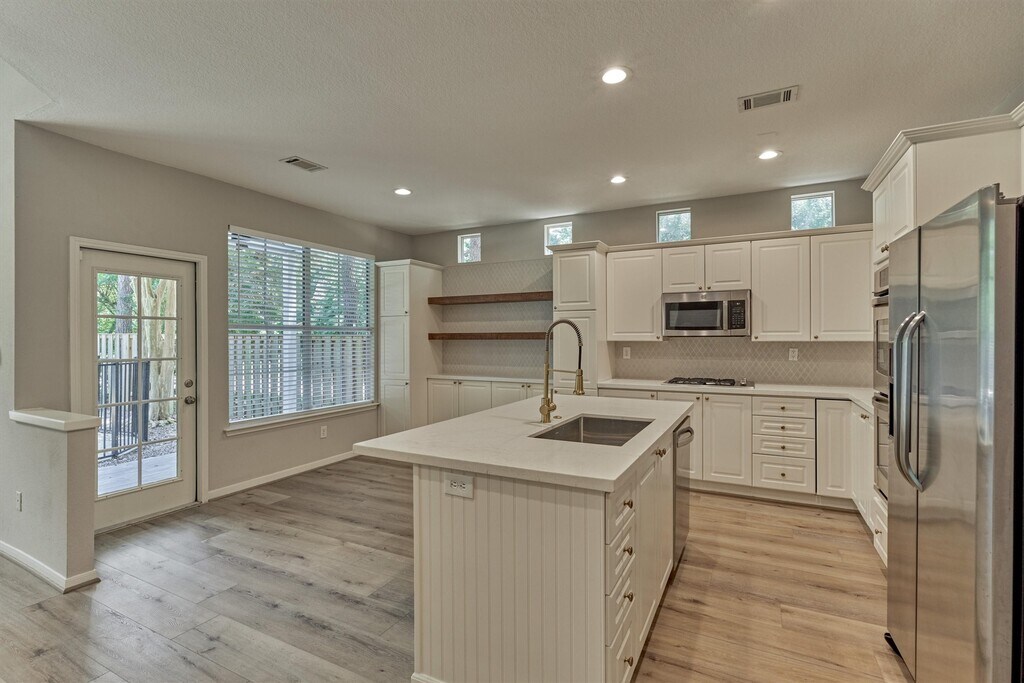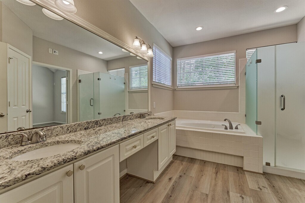 Stunning,Updated Lifeforms Home in Alden Bridge,Zoned to Acclaimed Bush Elementary & Mitchell Intermediate Schools. Enter From Charming Front Porch Into Entry Flanked by Formal Dining & Study w/ French Doors & Built-Ins. Updated Flooring Flows to Island Kitchen Featuring Granite Counters,SS Appliances & Opens to Breakfast & Living Rooms. Wall of Windows & Updated Tile Fireplace Surround Add to the Charm of Light & Bright Living Space. Updated Flooring Continues to Primary Retreat That Has Vaulted Ceiling w/ Bath Featuring Dual Sinks,Vanity,Soaking Tub,Separate Frameless Shower & Walk-In Closet. Upstairs,3 Airy Bedrooms & 2 Well Appointed Baths are Conveniently Located Adjacent to Large Game Room. Covered Patio & Sparkling Pool & Spa Surrounded by Wrought Iron Fencing w/ Sprinkler System & Mature Landscaping to Create the Perfect Outdoor Living Space. Home is Located in the Award Winning Community of The Woodlands & Near Stores,Retail Space & Offices. MLS# 14217922