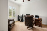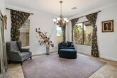 ROSE MODEL. EUROPEAN ISLAND KITCHEN WITH GRANITE COUNTERS, UPGRADED CABINETS, BREAKFAST BAR, NOOK, PANTRY. STAINLESS STEEL APPLIANCES. FORMAL LIVING ROOM, CROWN MOULDING, FORMAL DINING ROOM, FAMILY ROOM W/FIREPLACE & SURROUND SOUND. OWNER'S SUITE SEPARATE AND BATH W/DUAL RAISED SINKS, SHOWER, BATH WALK-IN CLOSET. COVERED PATIO, BUILT-IN BBQ, MATURE LANDSCAPING. NO NEIGHBOR DIRECTLY BEHIND FOR PRIVACY. SOLAR PAID FOR WITH LOW MONTHLY POWER BILLS. EASY CARE DESERT LANDSCAPING.