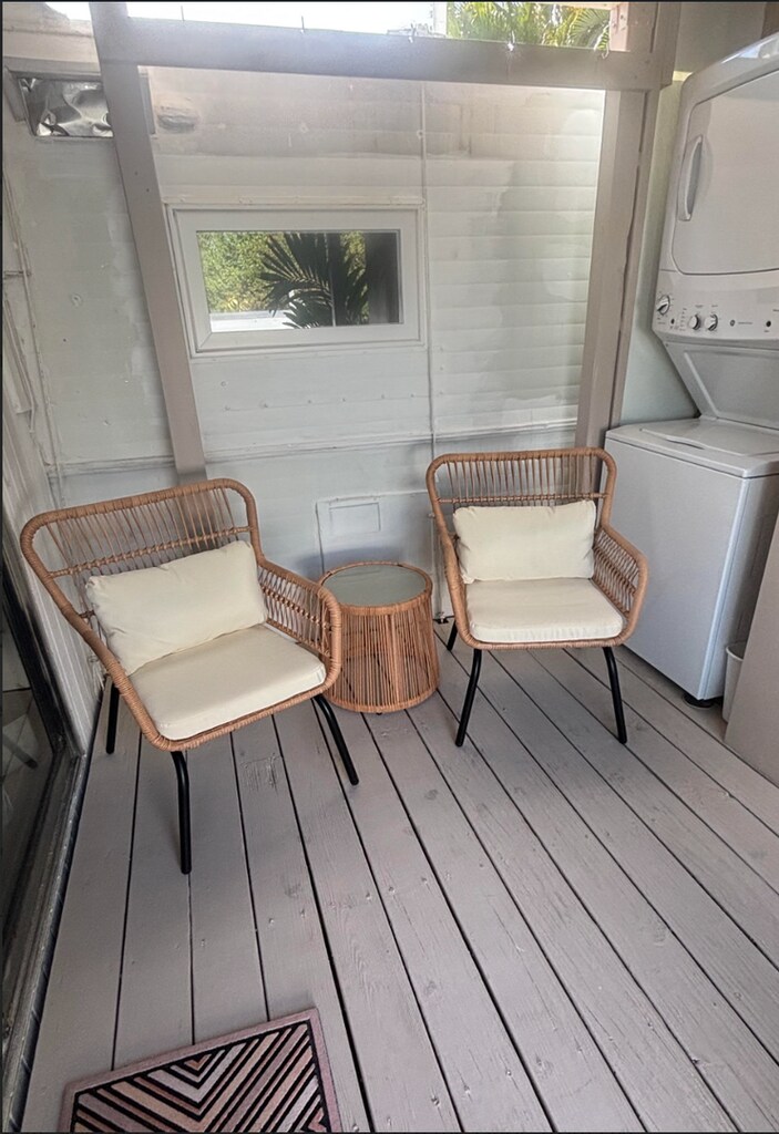 This newly renovated FURNISHED 1-bedroom, 1-bathroom home offers a clean and inviting living space perfect for long-term renters. The unit is bright and open, featuring newly installed vinyl flooring throughout for easy maintenance. The kitchen includes full-sized appliances and a double sink, giving you all the essentials for comfortable cooking. Two window A/C units—one in the living room and one in the bedroom—help keep the space cool year-round. This home also features one parking space near the entrance of the unit, but the option for street-side parking as well. This home is ideal for someone seeking a bright, low-maintenance space