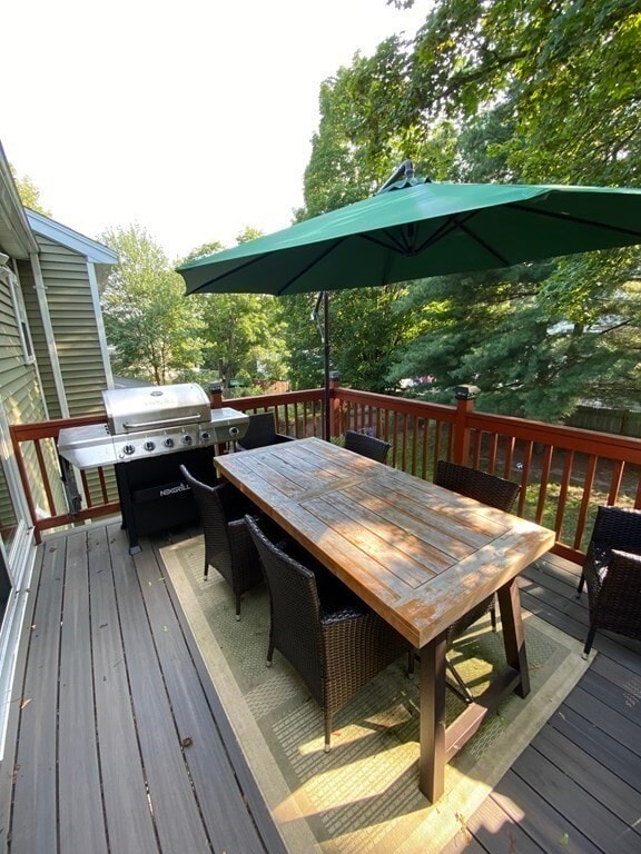 Rent fee includes: Electric,Gas,Water,Sewage Disposal,Laundry Facilities,Parking,Snow Removal.Welcome home to this beautifully renovated 3-bedroom,2-bath residence offering modern comfort and style. Spanning approximately 1,500 sq. ft.,this home features an inviting open-concept layout with 9-foot ceilings,crown molding,and wainscoting throughout.The spacious kitchen is a true highlight—complete with high-end stainless steel appliances,a gas range,white quartz countertops,and a classic subway tile backsplash. From the dining area,step directly onto a large private deck overlooking a shared,fenced backyard—perfect for relaxing or entertaining.The primary suite includes a custom-built closet and a full en-suite bath,while two additional bedrooms provide generous space and storage. Additional features include two off-street parking spaces,garage storage.Ideally located less than a mile from Route 3 and just minutes to Weymouth Landing Commuter rail.-Good Credit a Must!!! MLS# 73440757