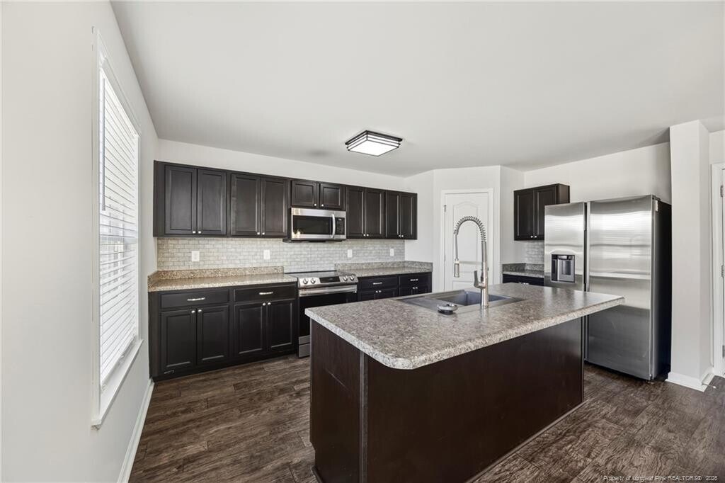 Step into comfort and modern style with this upgraded rental in Taylor’s Creek, where you get the best of a peaceful setting and an easy commute to Fayetteville, Dunn, and Fort Bragg. The main level offers an inviting open layout with a sunlit living area, a separate dining space, and a standout kitchen complete with a large island, custom tile backsplash, premium appliances, and generous cabinet storage. Upstairs, the spacious primary suite feels like a true getaway, joined by three additional bedrooms, two full bathrooms, a convenient laundry room, and a bonus media/flex room that can fit your lifestyle, office, game room, or cozy movie space. Outside, enjoy a fully fenced yard, an extended patio ideal for grilling and relaxing, and a two-story storage shed for extra space. Thoughtful updates like upgraded exterior lighting, new sinks, custom blinds, and fresh landscaping add the finishing touches to a home that’s move-in ready and made for easy living. **We do NOT accept 3rd party applications**