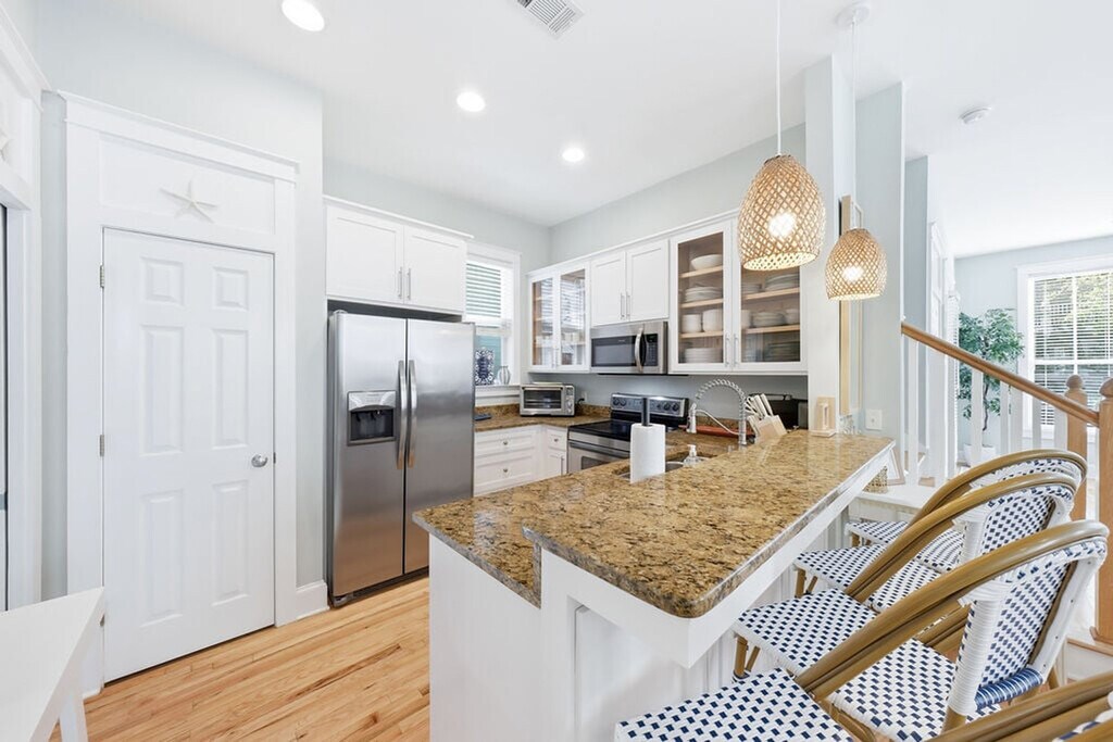 The advertised rate of $6,900/month is the lowest available price, based on a 30 day(s) stay with a move-in date of August 19, 2026. Rates vary depending on the duration of stay, season, and other parameters. For exact pricing and additional pricing components, please visit our website and enter your desired move-in and move-out dates. The rate is applicable when billed upfront; it can be higher if billed in multiple payments. Feel at home in this beautifully updated coastal retreat in the sought-after Summers Edge community in Seagrove Beach. This spacious 3-bedroom, 3-bath home comfortably sleeps up to 10 guests and offers multiple indoor and outdoor gathering spaces. Just a 5-minute walk to the beach, this home offers the perfect setting for a memorable beach getaway. The main living area is designed for relaxing after a day at the beach and includes a comfortable living room with a TV, a dining table seating up to 8 guests, and a well-equipped kitchen with bar seating for 4. For your convenience, there is a full-size washer and dryer. Enjoy access to two beautiful community pools within Summers Edge. Four complimentary bikes are included to explore Scenic 30A. Located in a quiet Seagrove Beach location with easy access to the 30A bike path, this home is near Seagrove Beach, Eastern Lake, Seaside, and Grayton Beach State Park. Enjoy nearby highlights such as Old Florida Fish House, Cafe Thirty-A, Surfing Deer, Angelina's Pizzeria & Pasta, Canopy Road Café, and Pazzo Italiano. Pets are not allowed. [SI]