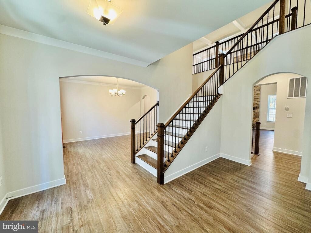 Welcome to luxury living in Stafford! This elegant 5-bedroom, 4.5-bath home located only a few short minutes to Quantico sits on a spacious 0.77-acre lot in the Onville Estates community. Built in 2019, the home combines high-end finishes, open-concept design, and comfortable living just minutes from major commuter routes and local conveniences. From the moment you arrive, you’ll be impressed by the stately stone exterior, grand entry, and inviting front porch. Step inside to a dramatic two-story foyer with a split staircase leading into the main living areas. The gourmet kitchen is a chef’s dream—featuring granite countertops, an oversized island, stainless steel appliances, double wall ovens, and ample cabinetry. The kitchen opens to a bright breakfast area and a spacious two-story great room with a floor-to-ceiling stone fireplace and elegant coffered ceiling, creating the perfect space for entertaining or relaxing at home. The main level also offers a formal dining room, a private office or study, and a convenient mudroom off the garage. Upstairs, the luxurious primary suite includes a sitting area, tray ceiling, private balcony, and two walk-in closets and wet bar. The ensuite bath features dual vanities, a soaking tub, a separate shower, and a private water closet and massive closet. Three additional bedrooms upstairs are generously sized—two share a Jack and Jill bath, and one has its own private ensuite. The finished walk-up basement adds more than 1,500 sq ft of living space, including a large recreation room, fifth bedroom, full bath, and plenty of storage. The lower level opens to a beautiful stamped concrete patio and fire-pit area, ideal for outdoor gatherings. The backyard offers ample room to play, entertain, and relax. The two-car garage includes an EV charging station and 240-volt outlet for added convenience. Located in beautiful Stafford County, this home offers quick access to I-95, Route 610, and Quantico Marine Base, making it ideal for commuters traveling to Northern Virginia or Washington, D.C. Local attractions include Widewater State Park, Crow’s Nest Natural Area Preserve, and Aquia Landing Beach Park—perfect for hiking, boating, and exploring nature. Residents also enjoy nearby shopping, dining, and family activities in Embrey Mill Town Center and Stafford Marketplace. Major employers in the region include GEICO, the FBI, the U.S. Department of Defense, and a growing number of defense and technology contractors. The area’s balance of employment opportunities, excellent schools, and outdoor recreation makes it one of Northern Virginia’s most desirable places to live. This stunning home at 34 Oak Road offers the perfect combination of space, elegance, and modern comfort in an ideal location. Available now for $4,200 per month—schedule your private showing today and make this exceptional property your next home.