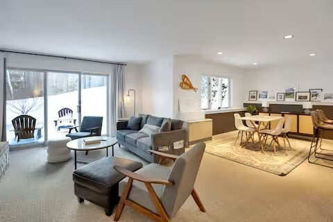 Property Id: 1449129 Welcome to Paradise! Walking distance (7 min) to Lincoln Peak/Sugarbush Village and on shuttle route for alternative easy access to the mountain. Our sunny condo is nicely furnished and provides all the comfort for your Vermont mountain getaway! Bedroom 1: King bed, towels, black out shades, attaching to an ensuite full bath. Bedroom 2: Two twin beds (new mattresses Jan 2025), pack n play, humidifier, black out shades, sound machine, and a bathroom. Warm up by the fire after a day on the slopes or relax and grill during summer months. Enjoy fresh mountain air off the private first floor deck with views of the mountain. Watch the groomers by the fire! Our unit is clean, comfortable, and private for your next getaway. Fully equipped kitchen (renovated in January 2025) complete with a gas stove, oven, dishwasher, microwave, toaster oven, coffee maker (traditional drip), coffee grinder, and is stocked with pots, pans, utensils, and Ninja blender. New appliances and dishes as of Jan 2025. Two full bathrooms renovated in January 2025. SMART TV with all the conveniences of Live TV via YouTube TV. We also provide access to Netflix, HBO Max, Disney +, and Amazon Prime. Upgraded Internet to enable WFH. Complimentary in unit laundry is also offered. EV Charging offered at nearby Sugarbush Resort.
